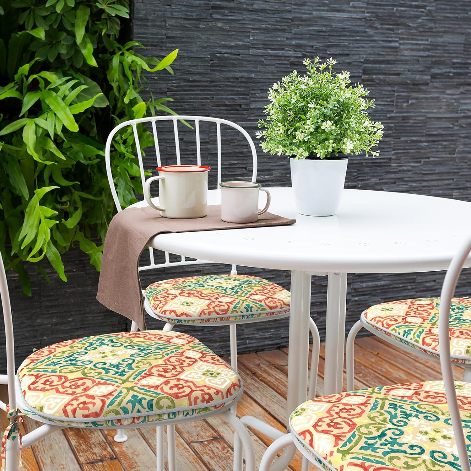 - Multiple Applications: Whether you're lounging or enjoying on your patio/balcony/garden/dining room, vibrant patterns can be adapted to your indoor and outdoor decor to add a vivid atmosphere. Attached ties keep the outdoor cushions securely in place, preventing unwanted sliding or movement while you sit.