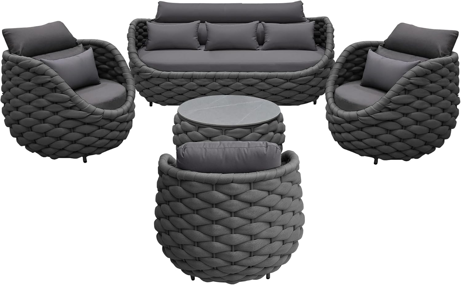 - Sturdy & Durable - Quick drying woven rope outdoor furniture with high quality aluminum alloy,no rust,no deformation,hand woven textilene rope are strong enough to withstand all weather variations.Outdoor patio furniture set cushions balance well with sturdy frame.