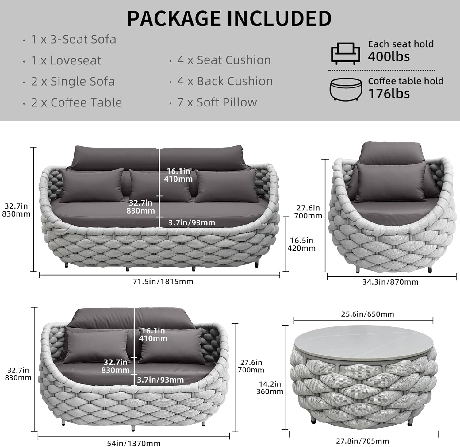 - Sturdy & Durable - Quick drying woven rope outdoor furniture with high quality aluminum alloy,no rust,no deformation,hand woven textilene rope are strong enough to withstand all weather variations.Outdoor patio furniture set cushions balance well with sturdy frame.
