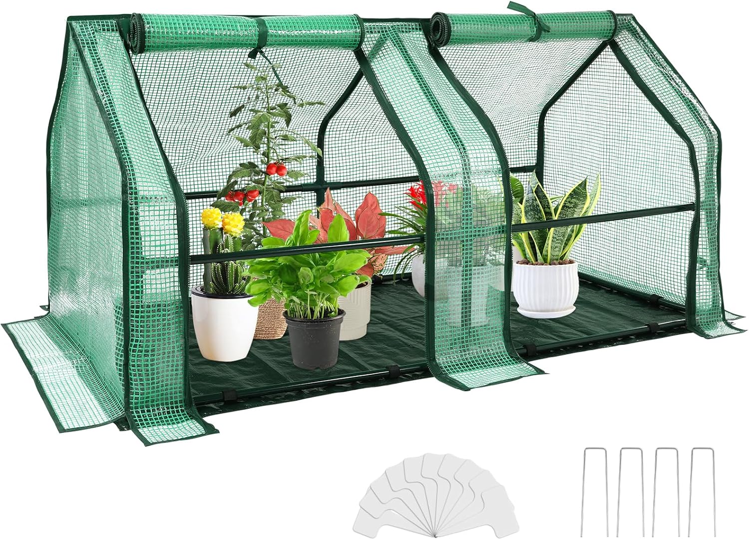 U'Artlines Portable Mini Greenhouse Small Green House with Waterproof Pad and Plant Label 47x24x24 Inch Plant Cover Tent for Garden Small Plants Indoor Outdoor, Green PE