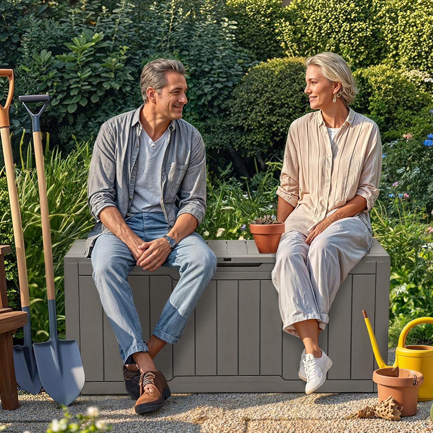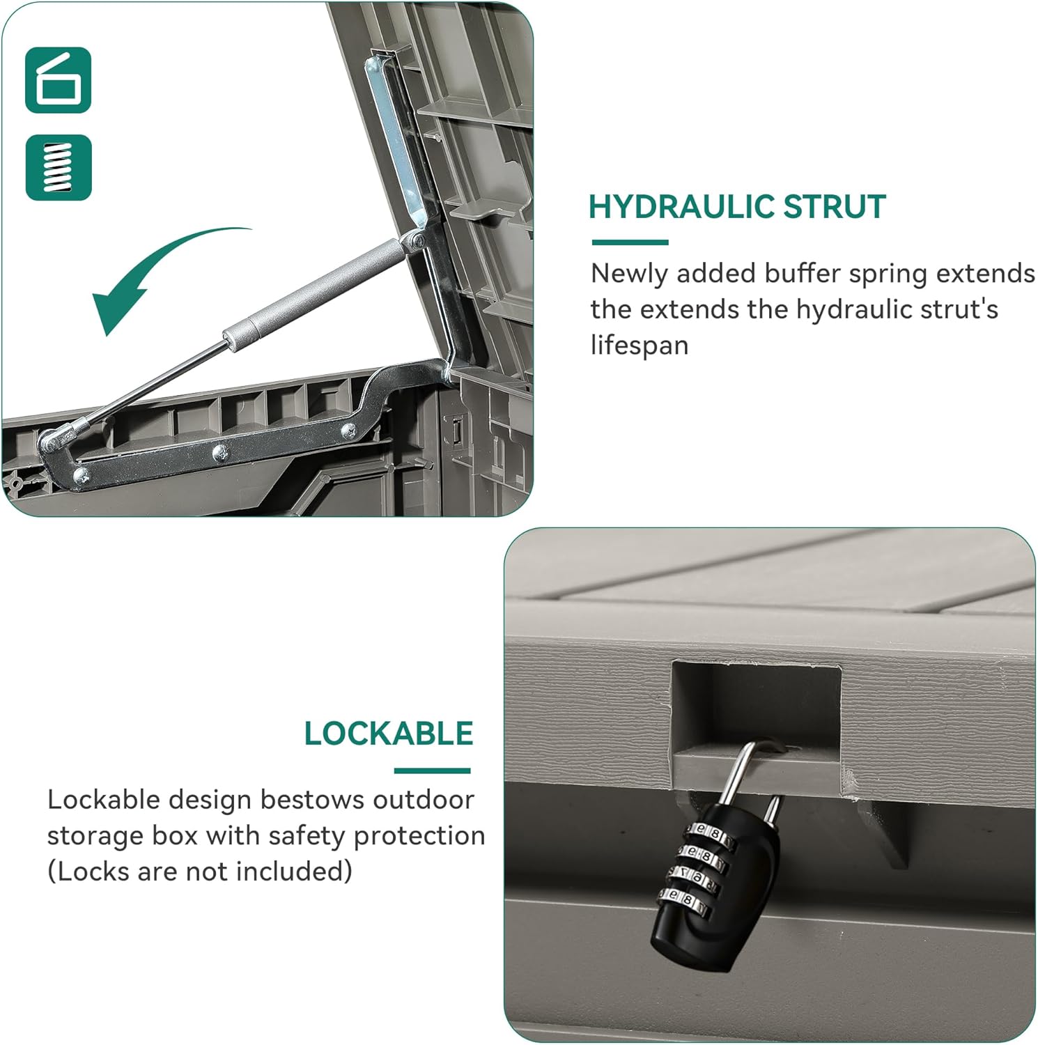 - Built to Last: Crafted from weather-resistant resin, these outdoor deck boxes are waterproof, rust-proof, UV-resistant, and fade-proof, making them ideal for long-term outdoor use in various climate conditions
