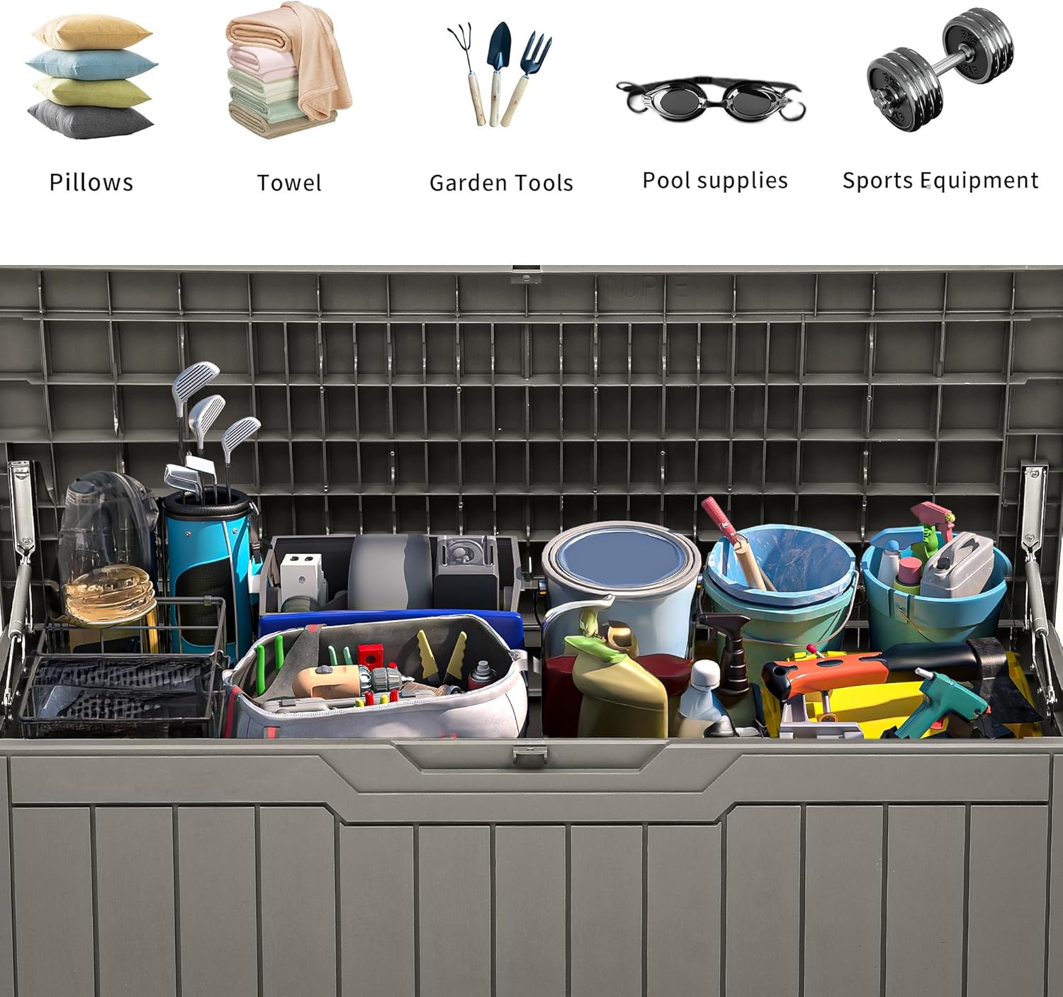 - Versatile and Secure: Our resin storage box is designed for both indoor or outdoor use, suitable for storing patio furniture cushions, gardening tools, pool accessories, and more; The deck box with lock design ensures your items stay safe and secure
