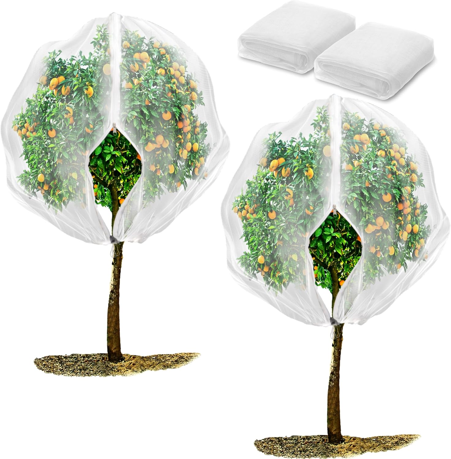 2 Pack Fruit Tree Netting Bags with Zipper and Drawstring, 6 x 6ft Ultra Fine Mesh Garden Netting Plant Cover, Bird Netting for Blueberry Bushes, Fruit Trees, Flowers (White, 6 x 6 ft)
