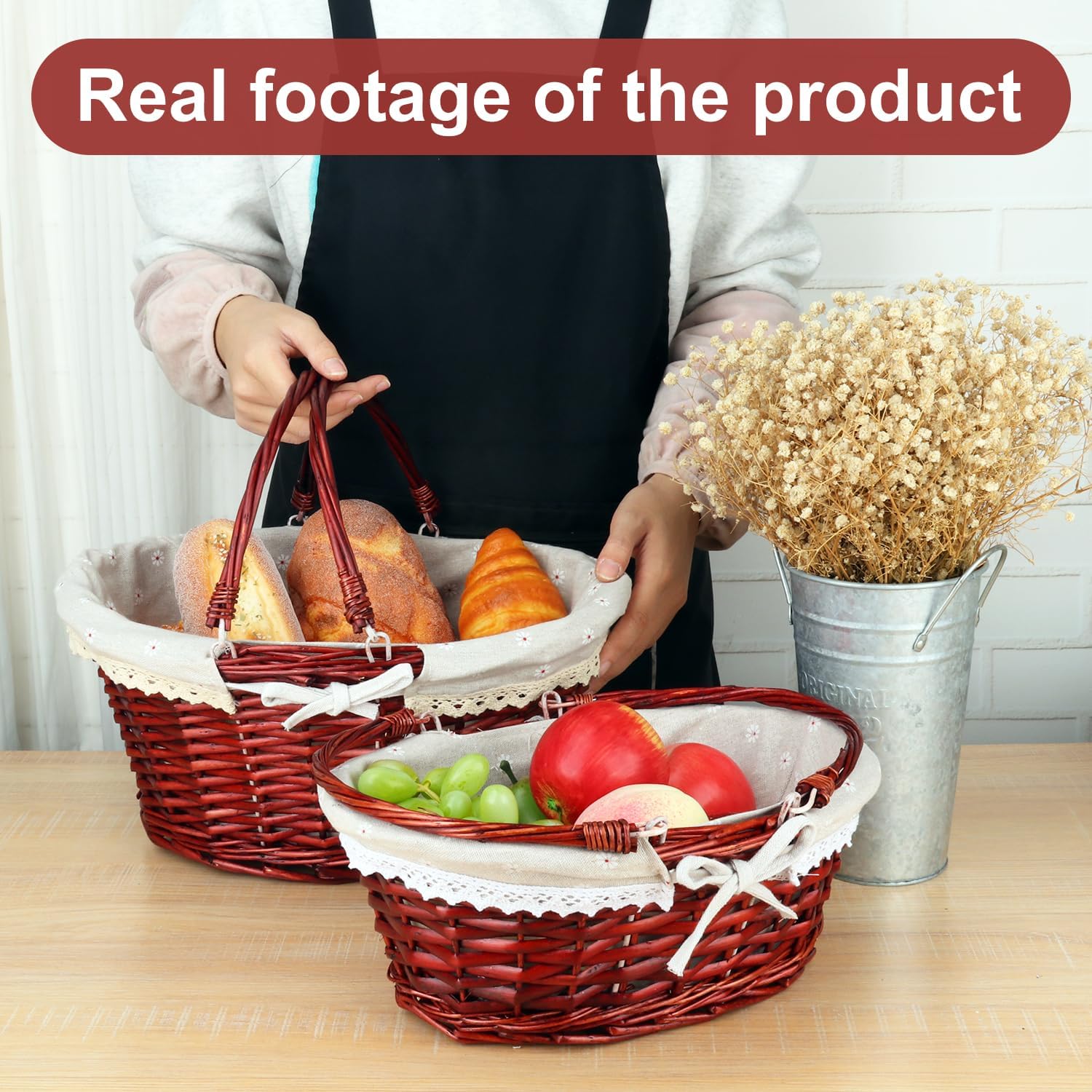 - 【Easy to Carry with Handle】 Equipped with a sturdy handle, this woven basket with handle is easy to transport, making it the perfect companion for picnics, market shopping, or as a gift basket for any occasion.