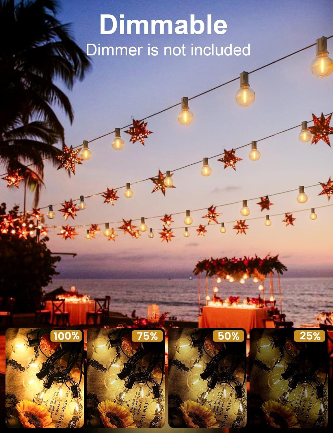 - Easy to install and widely used:The 50ft G40 globe patio lights arrive fully assembled with 17bulbs and 1 Spare Bulb, ready for plug-and-play functionality. They emit a warm, inviting glow that creates a cozy and romantic ambiance. These versatile outdoor lights are perfect for various occasions such as terraces, backyards, decks, bistros, etc.