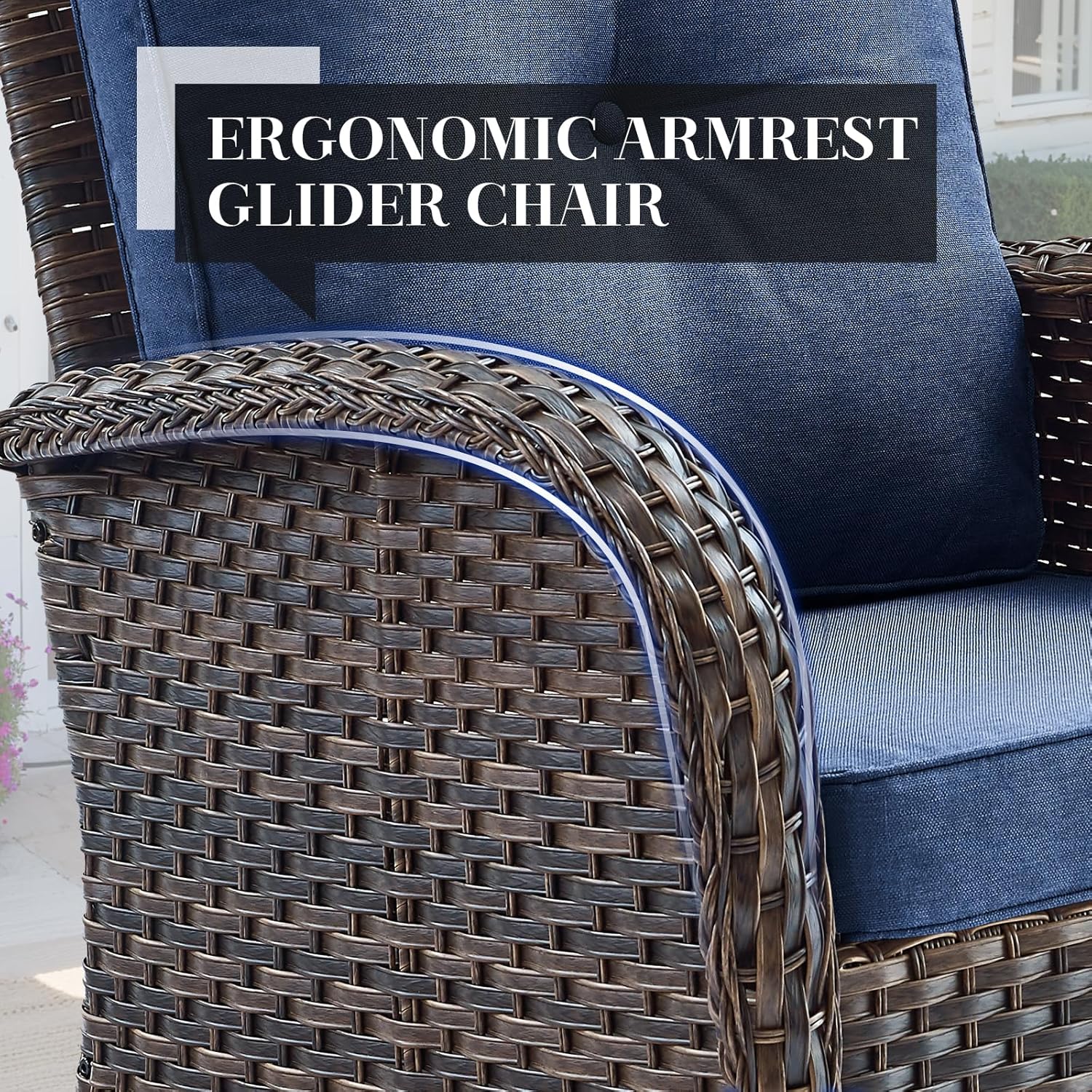 HUMMUH 5 Pieces Wicker Patio Furniture Set,Outdoor Rocker Chairs,Patio Ottomans,Glass Top Side Table,Outdoor Conversation Set for Porch Deck Backyard Poolside