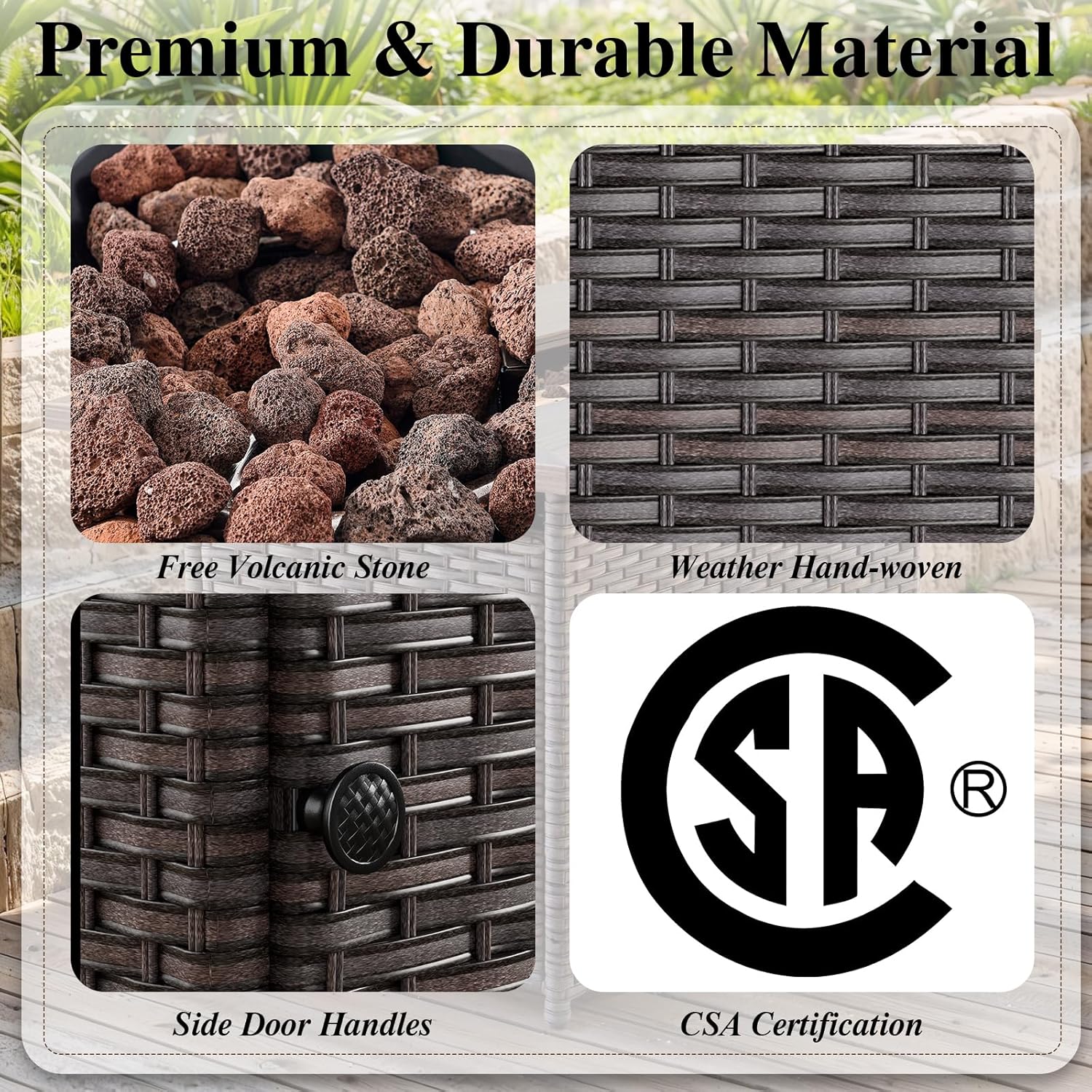 - Auto-ignition Fire Pit:The gas fire pit can reach up to 50,000 BTU heat output and is equipped with an integrated electronic ignition,It is CSA certified and undergo rigorous inspection and testing before leaving the factory to ensure reliability and safety.It can be used as a coffee table with the lid.