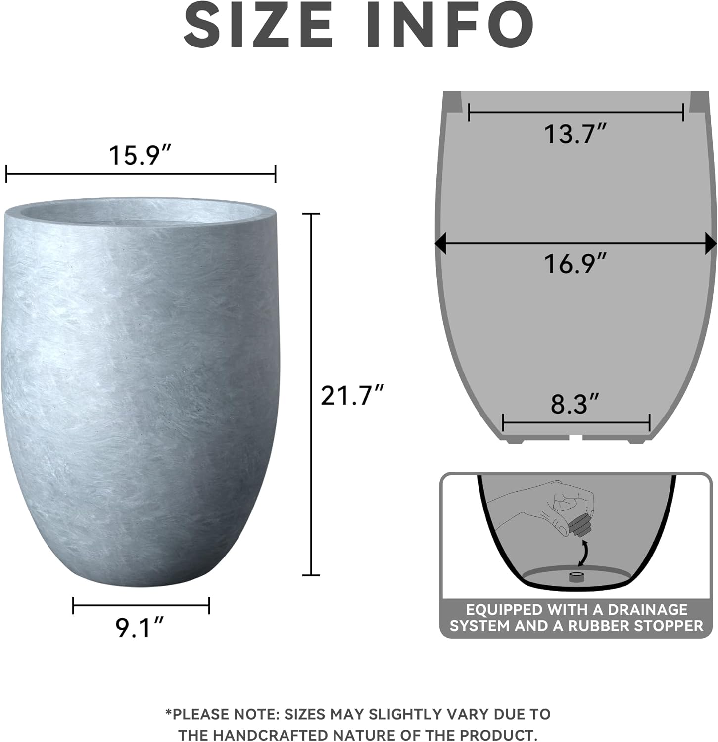- Drainage System – Our planter pot features drainage holes for efficient water management, each equipped with a rubber plug for both indoor and outdoor use. Enjoy effortless gardening with minimal upkeep, promoting a healthy environment for your plants.