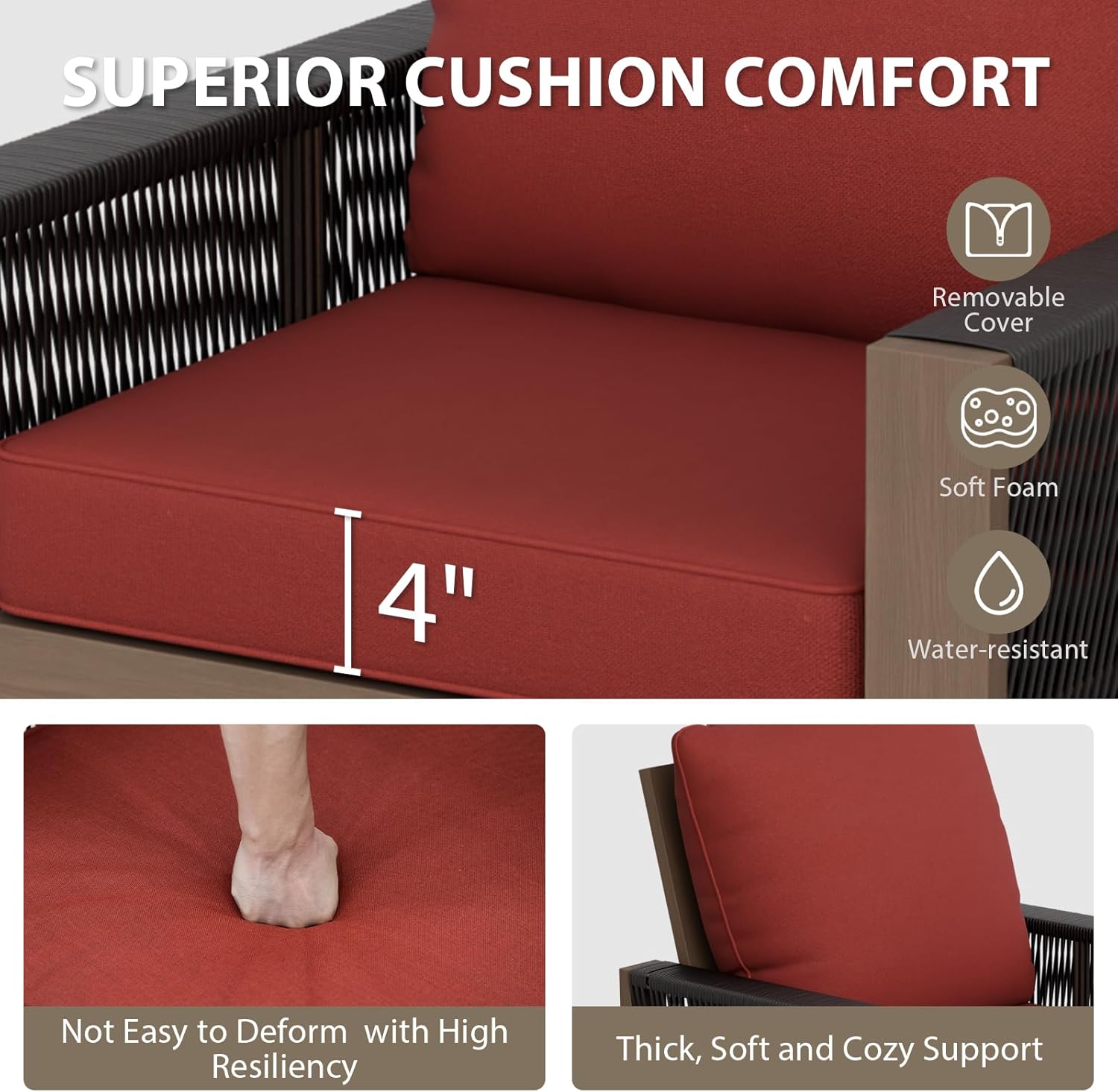 - SUPERIOR CUSHION COMFORT: Generously padded with soft foam and wrapped in premium UV resistant Olefin fabric, the cushions provide a cozy, supportive feel for hours of relaxation. The covers are equipped with a convenient zipper closure for easy removal, making cleaning and maintenance a breeze.