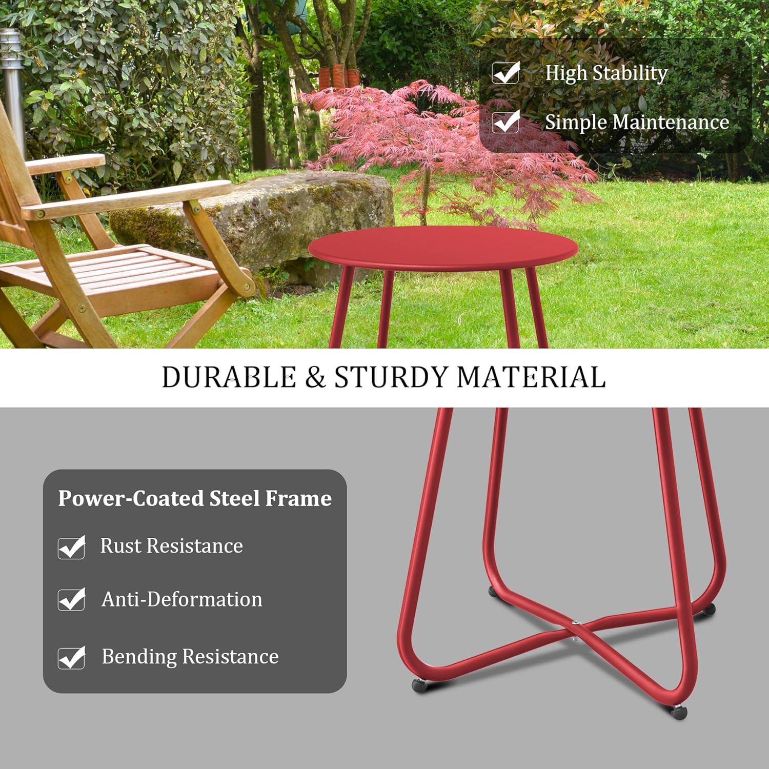 Patio Side Table Waterproof Round Metal Steel Weather Resistant Portable Outdoor and Indoor End Table for Garden Balcony Yard, Dark Red