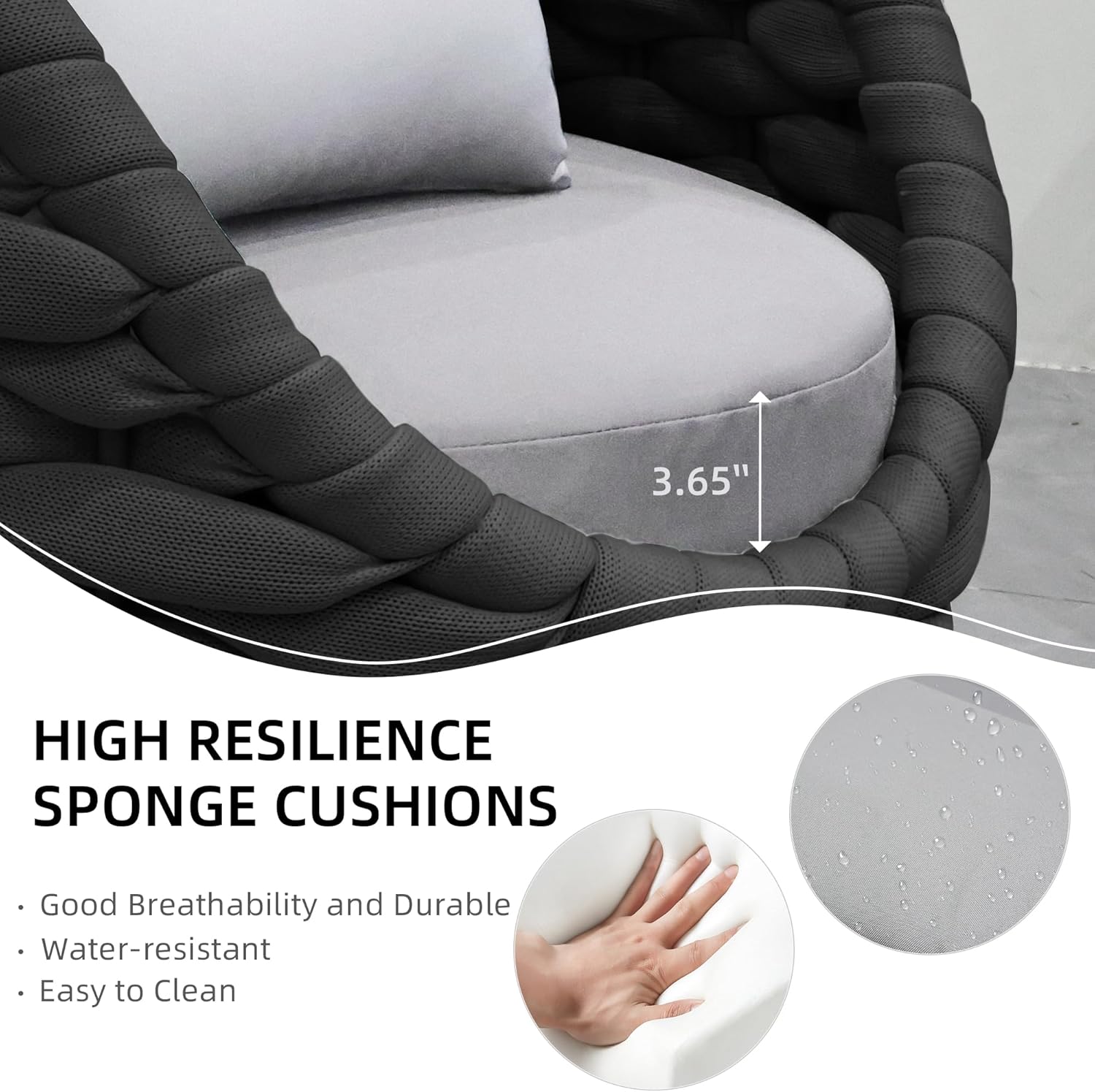 - Soft & Comfortable: Outdoor patio furniture has 3.7" thick seat cushions that are upholstered by water-resistant and UV-protective polyester fabric for ergonomic optimal comfort.Cover of cushions can be removeable and washable by invisible zipper as well