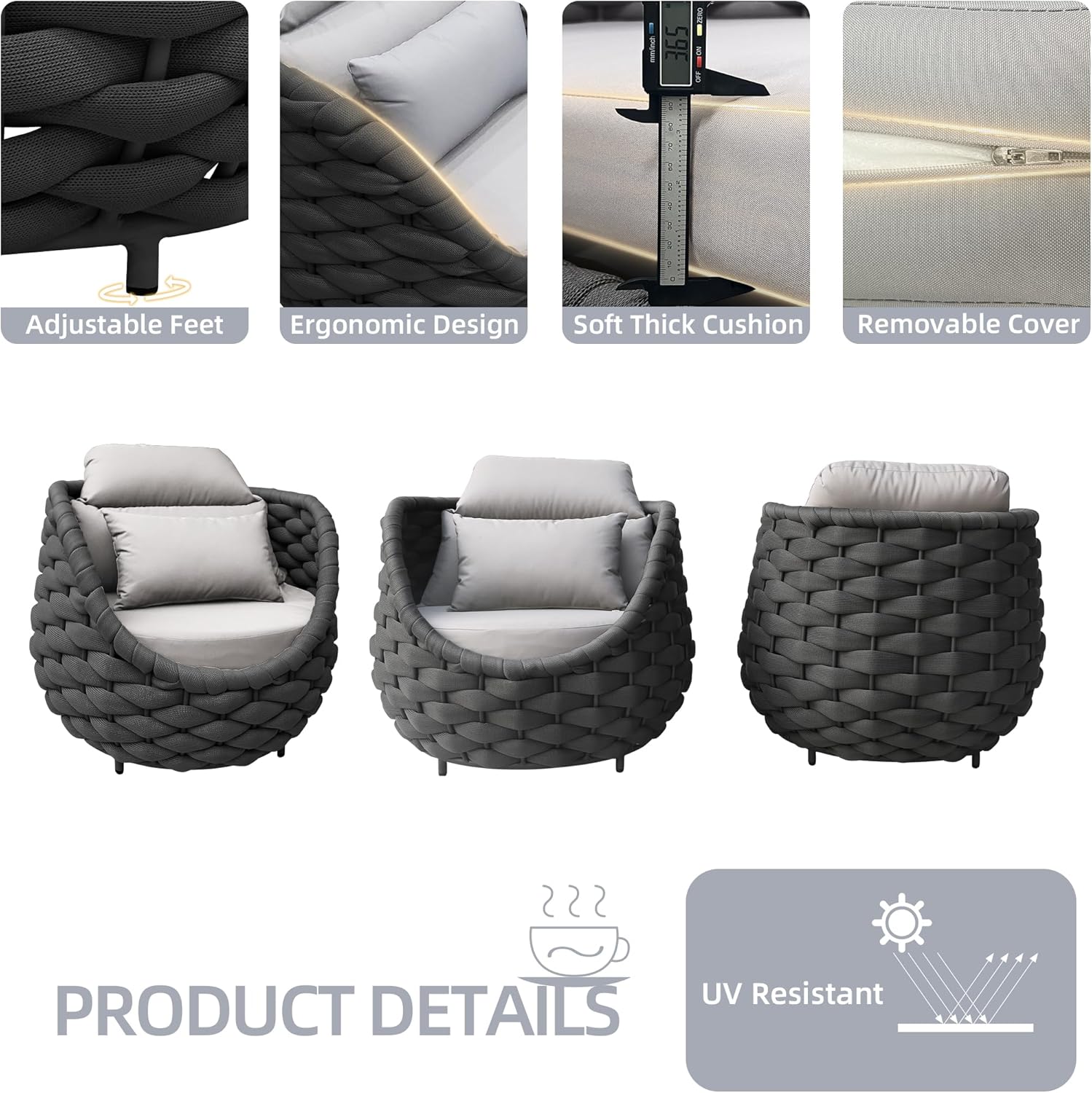 - NO required assembly & easy to clean:Our outdoor couch NO required assembly, just take them out and use. TWT patio chairsβ seat are easy to clean and polyester rope relatively soft. No need to take more extra special care to maintain patio couch