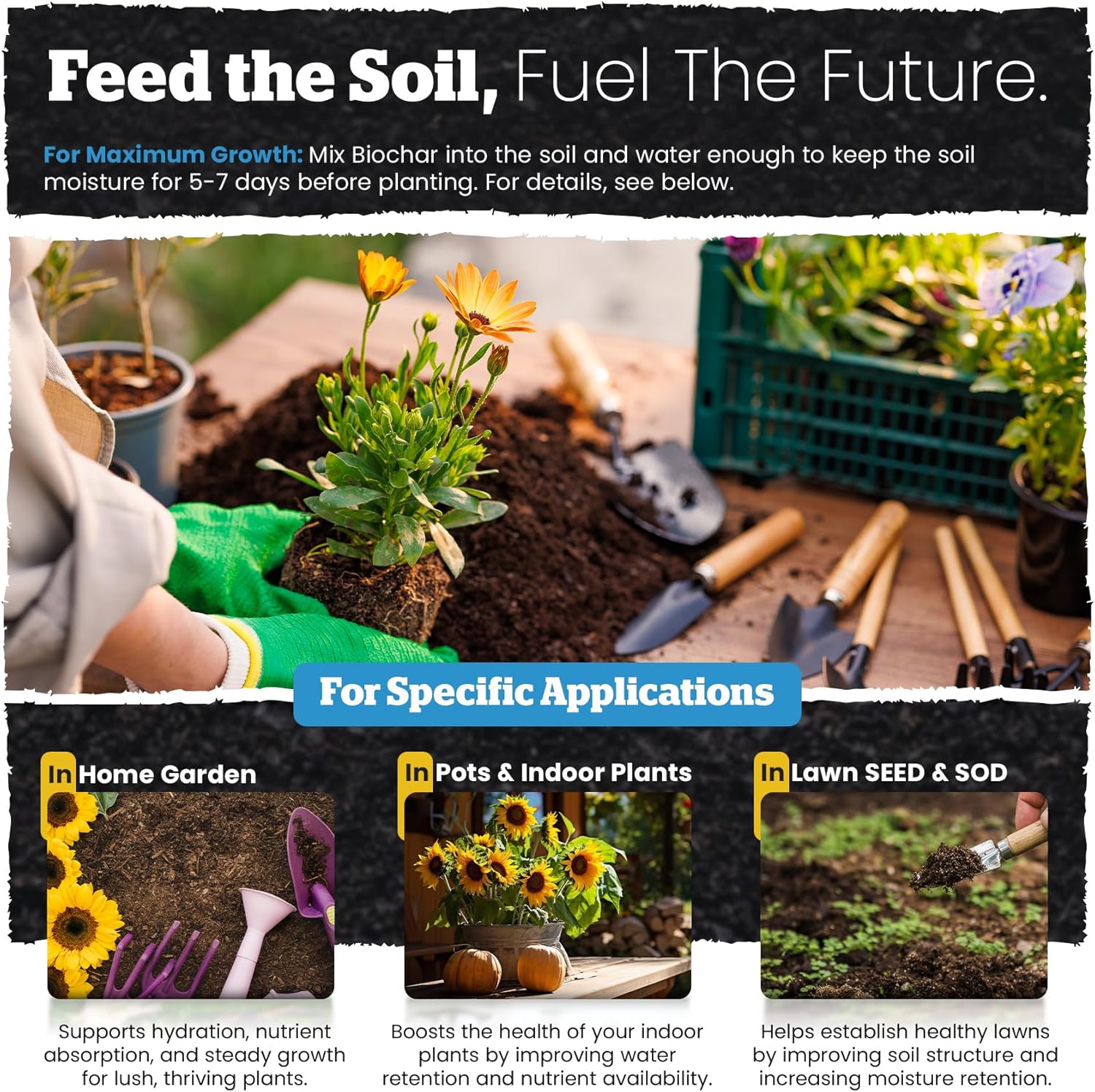 - Boost Root Development and Soil Fertility Empower your plants with enhanced root growth and nutrient uptake from the ground up. Our bio char for plants is infused with mycorrhizae and plant probiotics, strengthening root systems by increasing their surface area and ensuring better nutrient uptake and water retention. This houseplant potting soil boosts fertility and resilience, helping plants withstand environmental stress for vibrant, long-lasting growth.