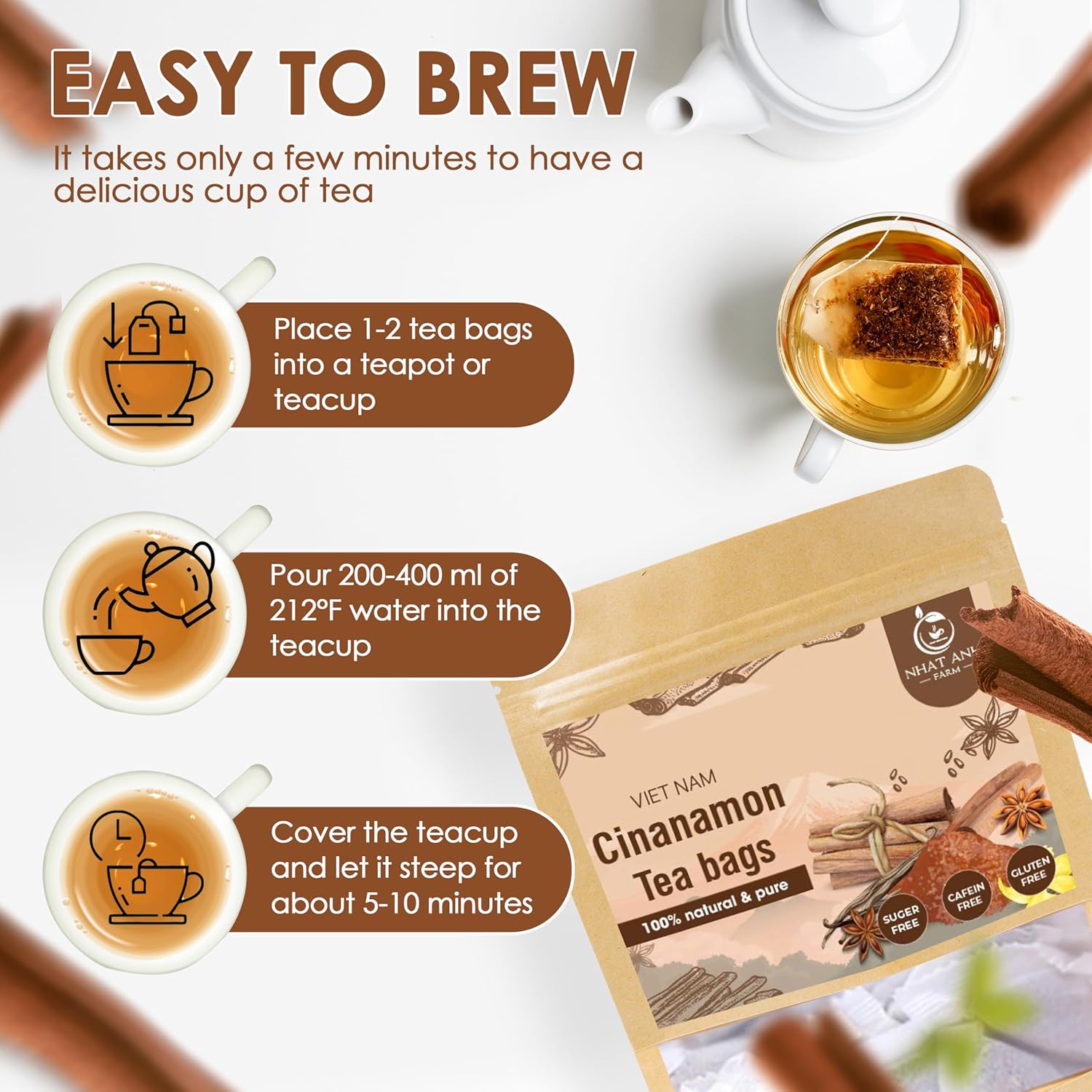 NHAT ANH FARM - Premium Cinnamon Tea Bags, 40 Teabags, 2g/bag, 100% Natural, Hand-Selected Cinnamon Tea Bags, No Additives, Sugar-Free,Caffeine-Free. Good For Your Health.