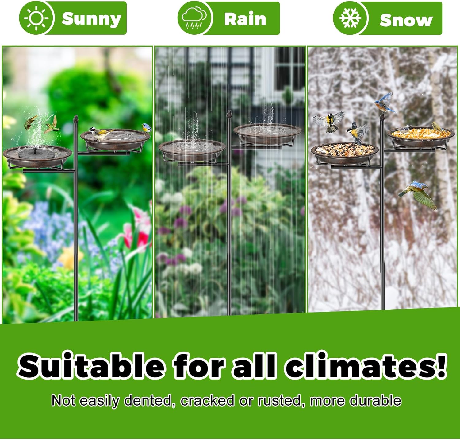 - 【Durable Material】Heavy duty metal stakes provide strong support for this bird bath, keeping it upright and firmly in the soil of the yard. Strong load-bearing capacity, not easy to fall apart, break, blow away. Weatherproof and rustproof, durable that can be used for long time outdoor.