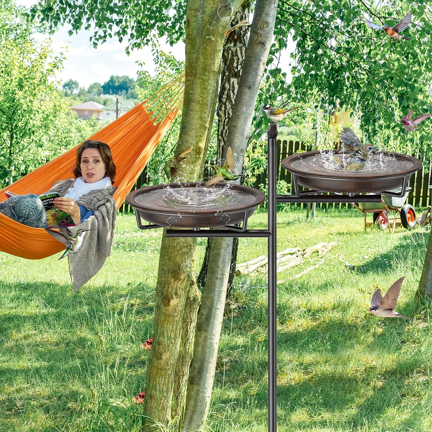 - 【2-in-1 Bird Bathtub & Feeder】After the upgrade, an additional basin has been added, which can meet the feeding and bathing needs of birds at the same time, making it very suitable for outdoor gardens. And it is very easy to clean and fill. Keeping it clean is very important for the health of birds.
