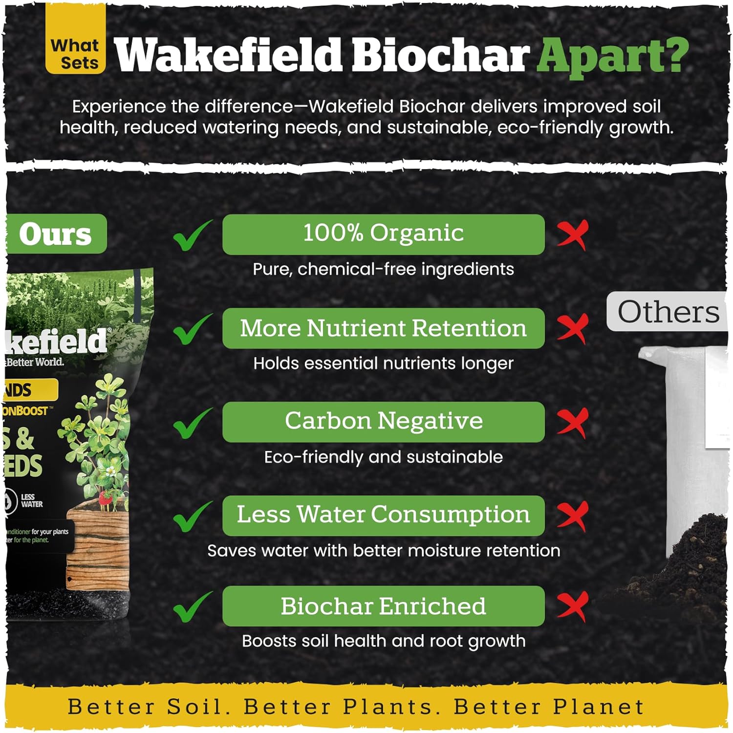 Wakefield Biochar Blend with CarbonBoost™ Technology – Enhanced Water & Nutrient Retention for Raised Bed Garden Soil - Ultimate Organic Potting Soil Mix for Vegetables, Gardens and Houseplants - 4qt