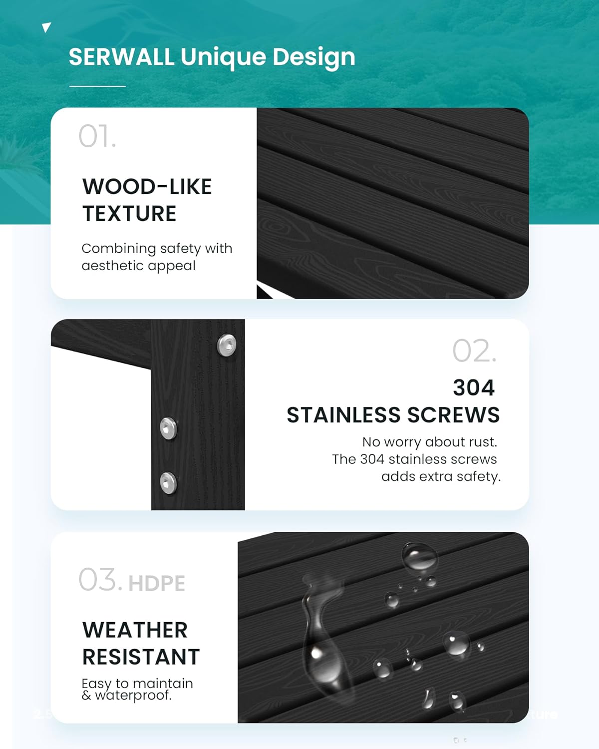 - Waterproof & Fast-drying – The slatted HDPE material is designed to shelter from rain and dry quickly, so you don't have to wait long after a storm to use it. Ideal outdoor furniture for poolside.