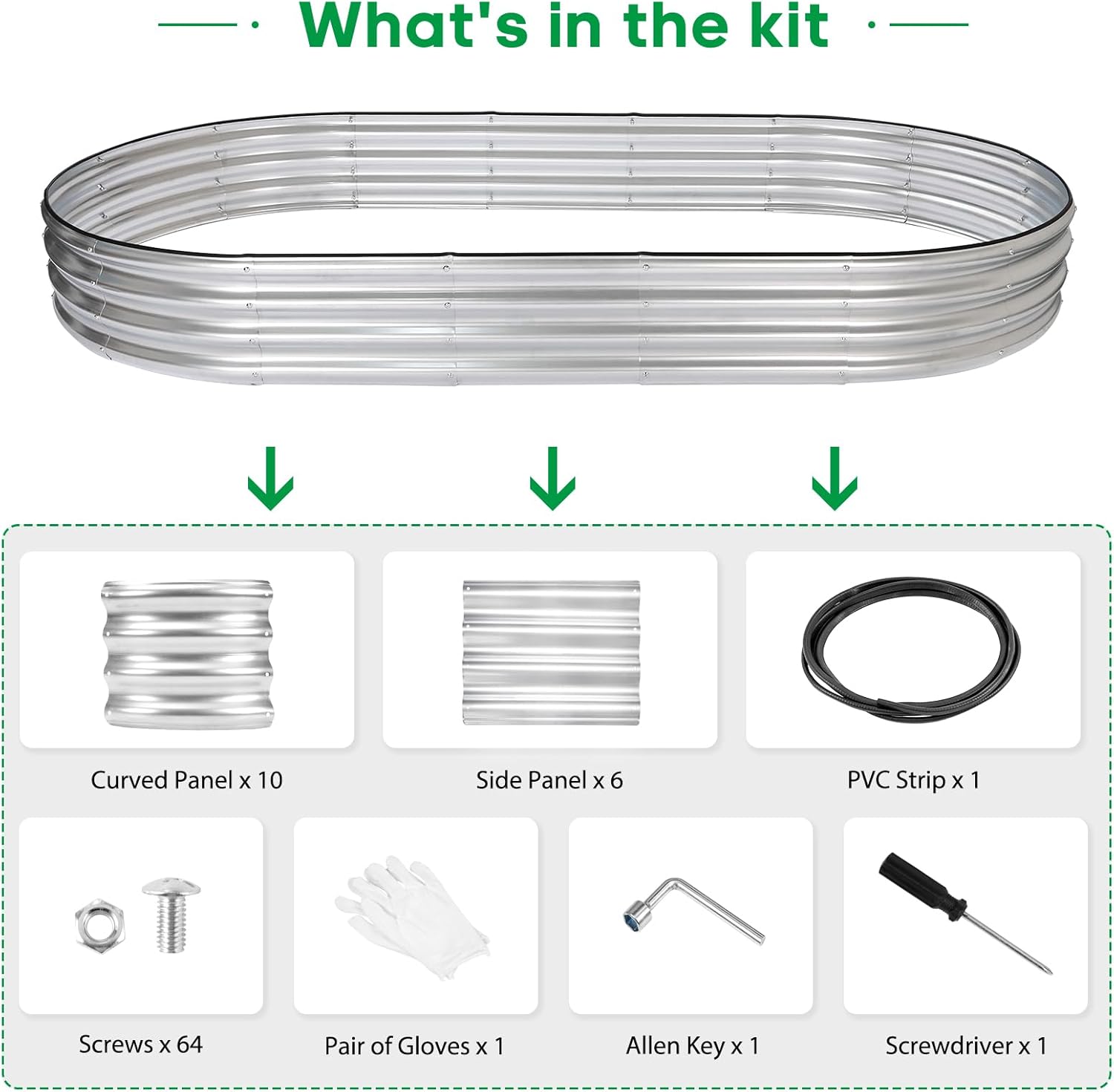 - What You Get: we have included Galvanized raised garden bed kit with detailed assembly instructions, rubber edge strips, safety gloves , wrench tools and with galvanized nuts and bolts in the box .These essential tools elevate your overall planting and gardening adventure