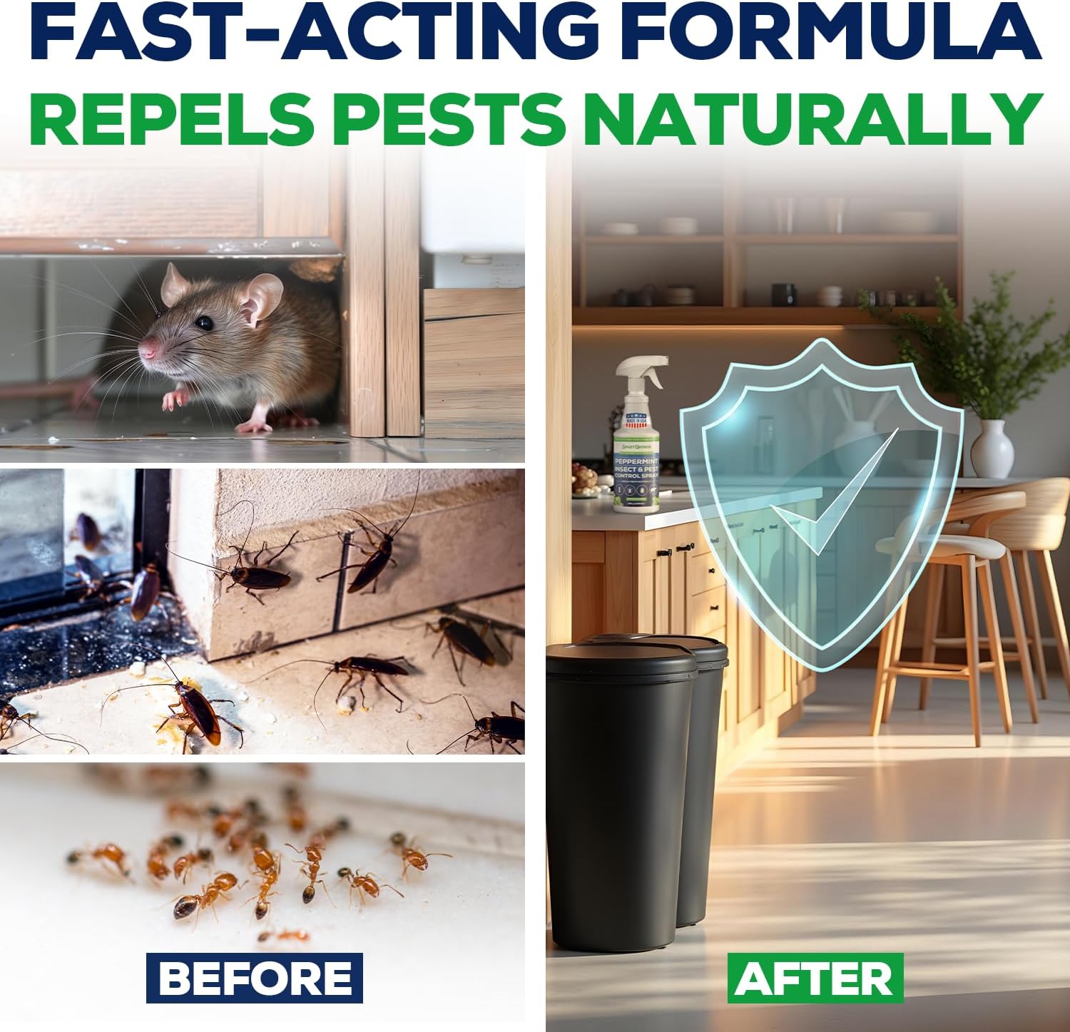 All Natural Peppermint Oil Insect & Pest Control Spray Repels Mice, Spiders, Ants, for Home, Indoor, Outdoor, Garden Maximum Strength Smart Grower Ready to Use 16 FL OZ