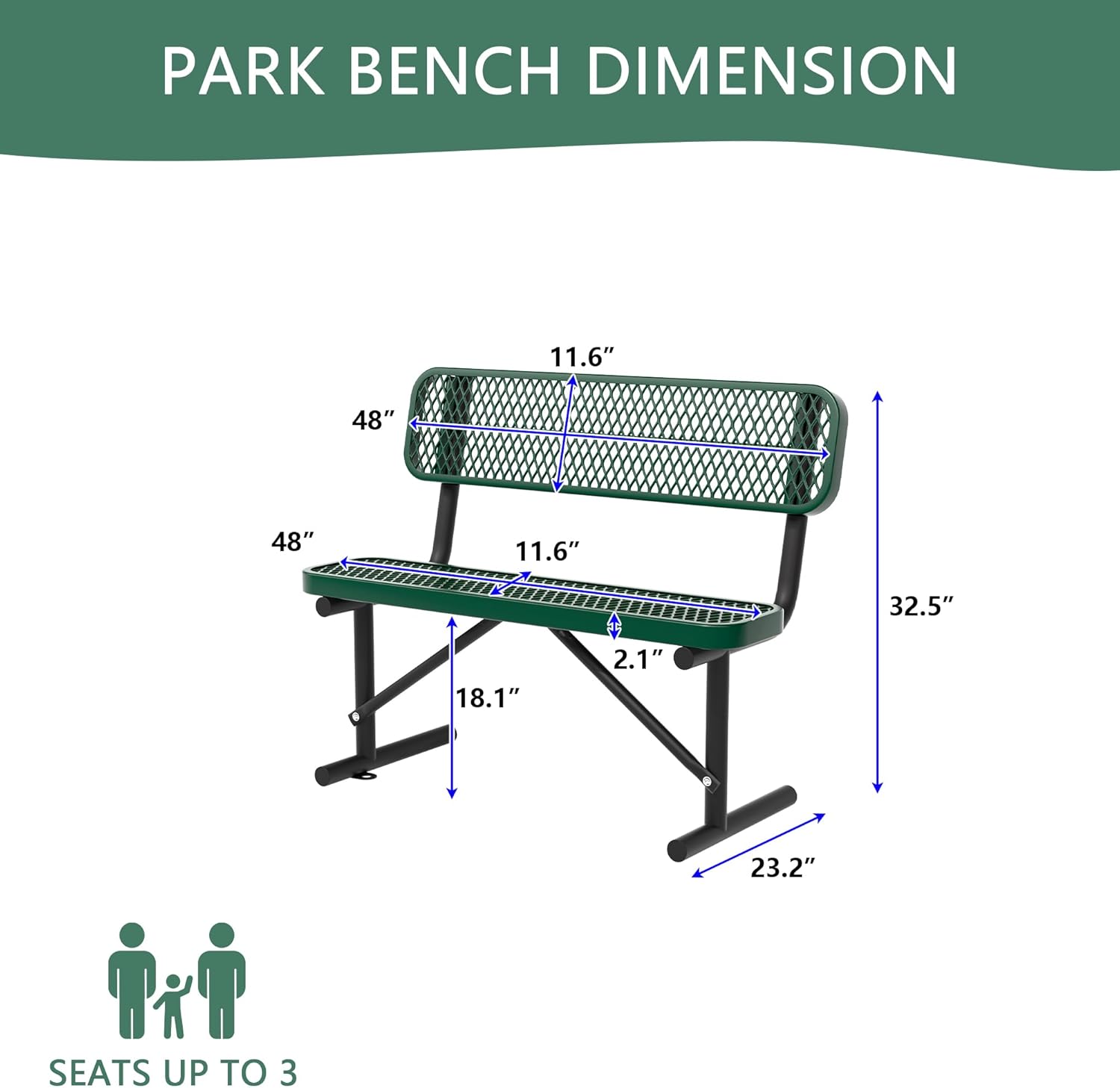 - High-quality materials: Our outdoor park benches are made of high-strength steel, coated with a weather-resistant thermoplastic coating, super smooth, rust-proof, and waterproof. It can withstand extreme weather conditions throughout the year, making it perfect for outdoor use.