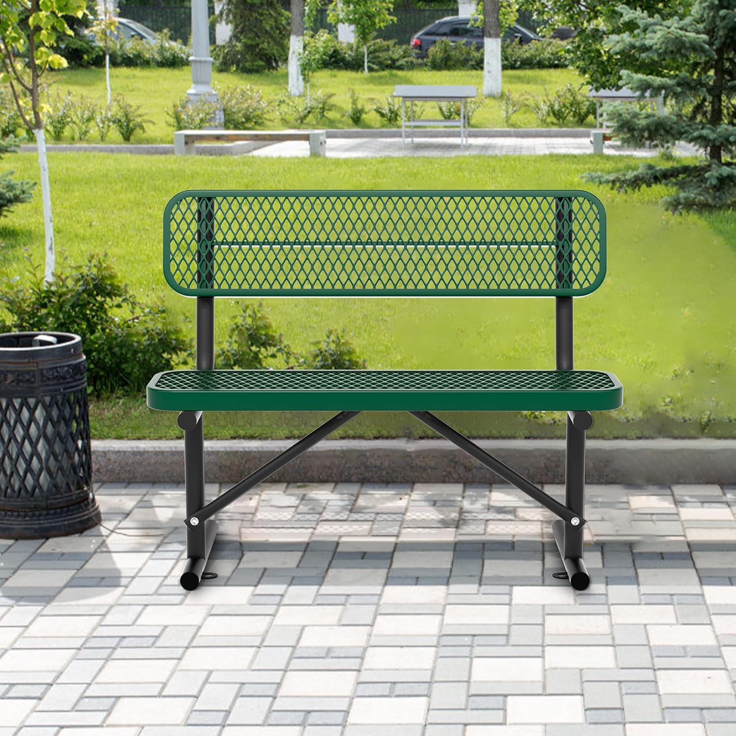 4/6/8 Feet Park Bench for Outside Heavy Duty Metal, Garden Benches Outdoor Bench with Backrest & Portable Frame, for Shopping Malls Stores Parks Patios Decks, Green