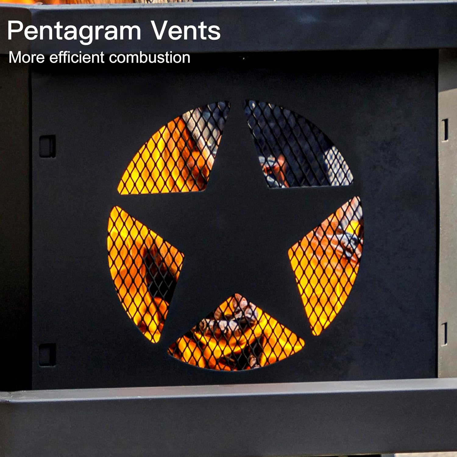 - [Enough Heat] Panovue firepit has vents on fire pit's sides and ridges on bottom of fire pit which can help elevate firewood for better air flow underneath fire, resulting in more efficient combustion and a larger, brighter flame. The octagonal design of wood fire pits can accommodate 3-6 people for heating, and each angle is warm enough.