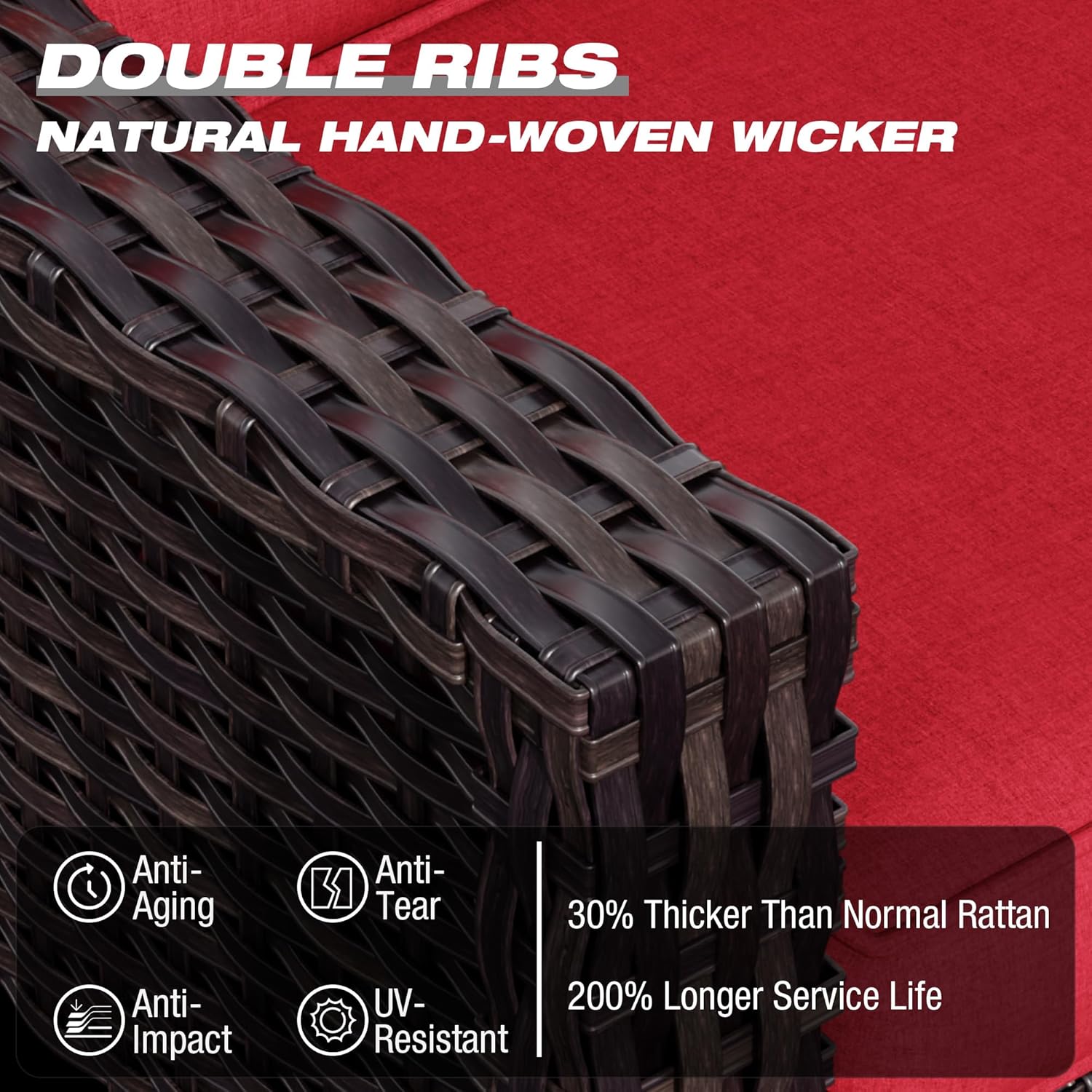 - Ergonomic Design: Our outdoor wicker chairs are upgraded to a larger size to bring you more extraordinary comfort. The ergonomic curved backrest and wider armrests provide better support for your neck and arms