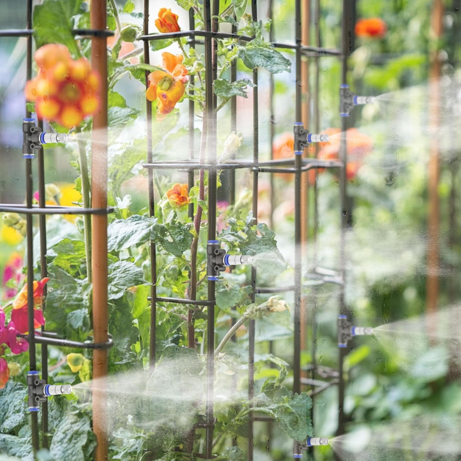 - 【Easy to Install】: It is very easy to install and dissemble. Just directly put the mister nozzles with filter mesh into 1/4" misting nozzle tee, and then connect the misting nozzle tee to the 1/4" tubing pipe easily, no need of heating, more convenient but also faster than traditional dripping irrigation systems. If connected wrong, it can be easily disassembled and reconnected, not easy to fall off and leak.