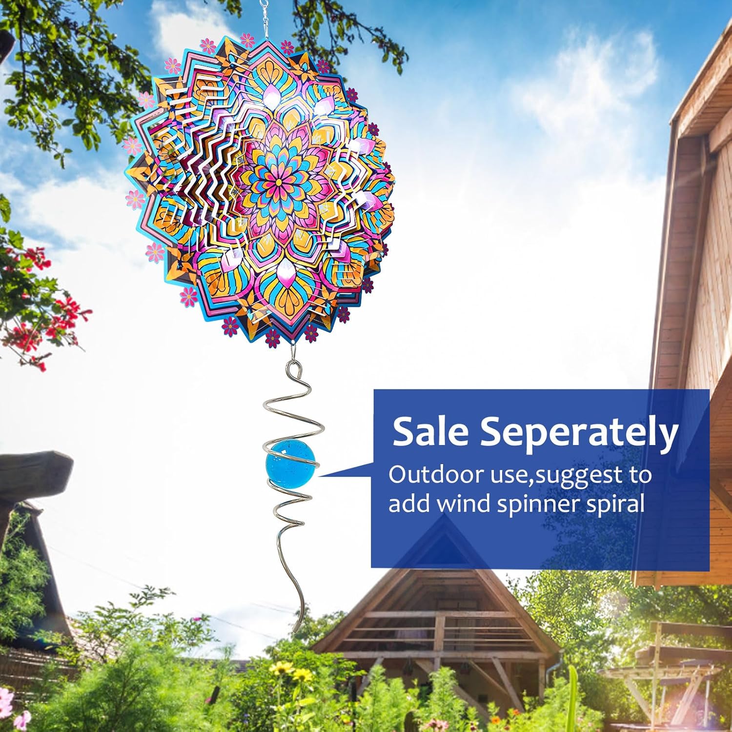 - 【3D Mandala Wind Spinners】The mandala wind spinner showcases a breathtaking 3D mandala design. As it catches the sunlight, it imparts vivid colors and lively movement, creating a captivating display that offers both a delightful visual experience and a sense of wonder. This mandala spinner is sure to enhance the charm of your garden or patio.