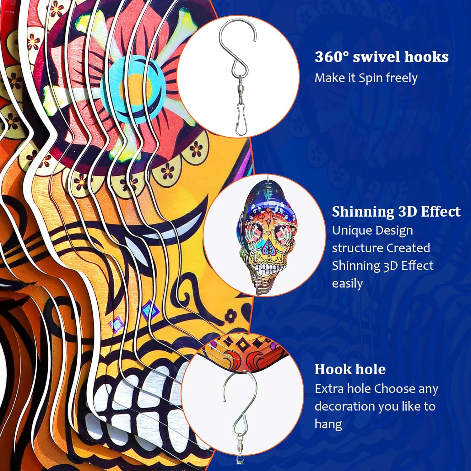 - 【Kinetic Sugar Skull Wind Spinner】The skull wind spinner showcases a breathtaking 3D sugar skull design. As it catches the sunlight, it imparts vivid colors and lively movement, creating a captivating display that offers both a delightful visual experience and a sense of wonder. This kinetic wind spinner is sure to enhance the charm of your garden or patio.