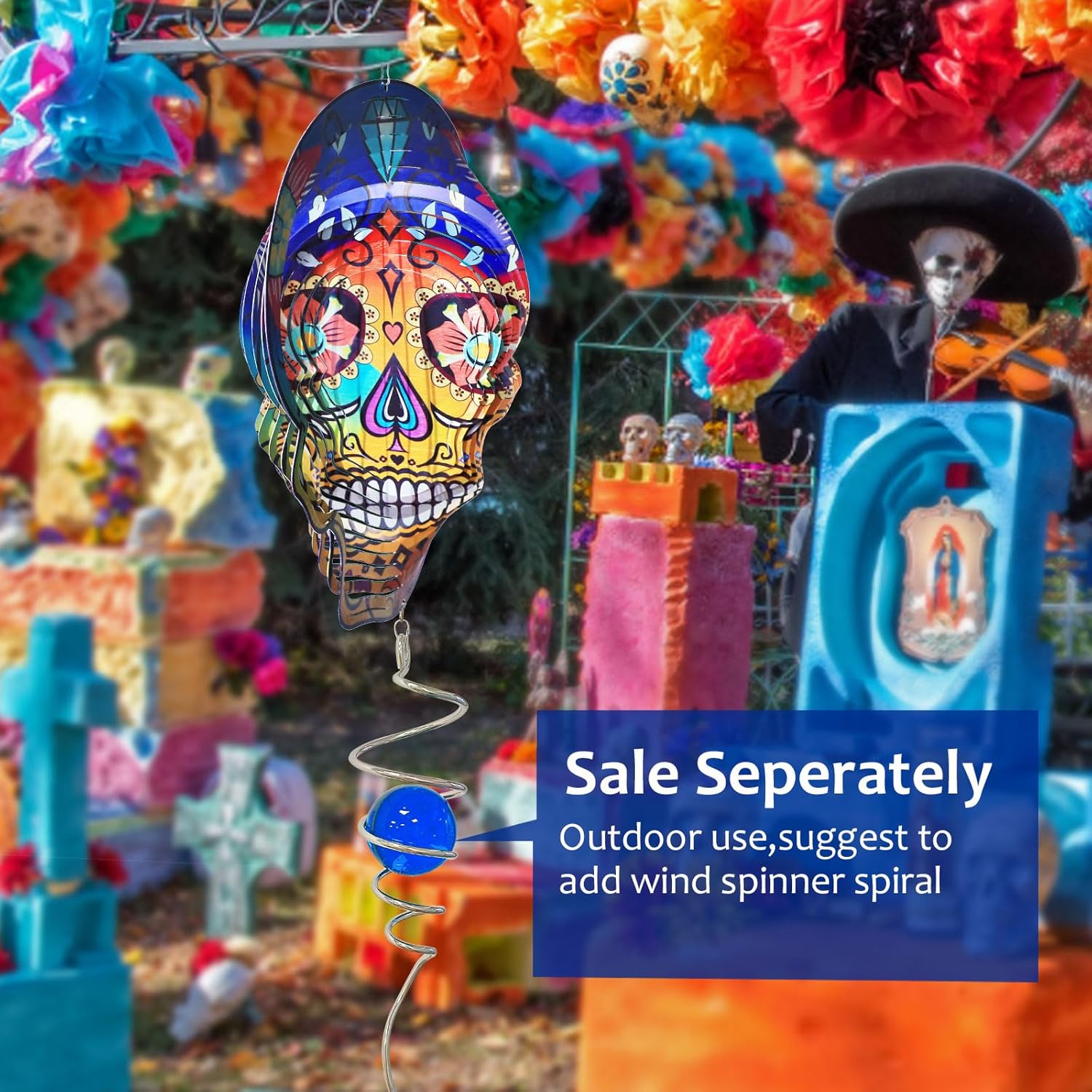 - 【Halloween Garden Wind Spinners】Sugar Skull Wind Spinners represent missing and memories. It is not an ordinary garden decoration, it is remembering our loved ones in a positive and vibrant way. This elaborately decorated representation of a skull wind spinner not only adds to the festive ambience, but also provides a visual reminder of the value of life.