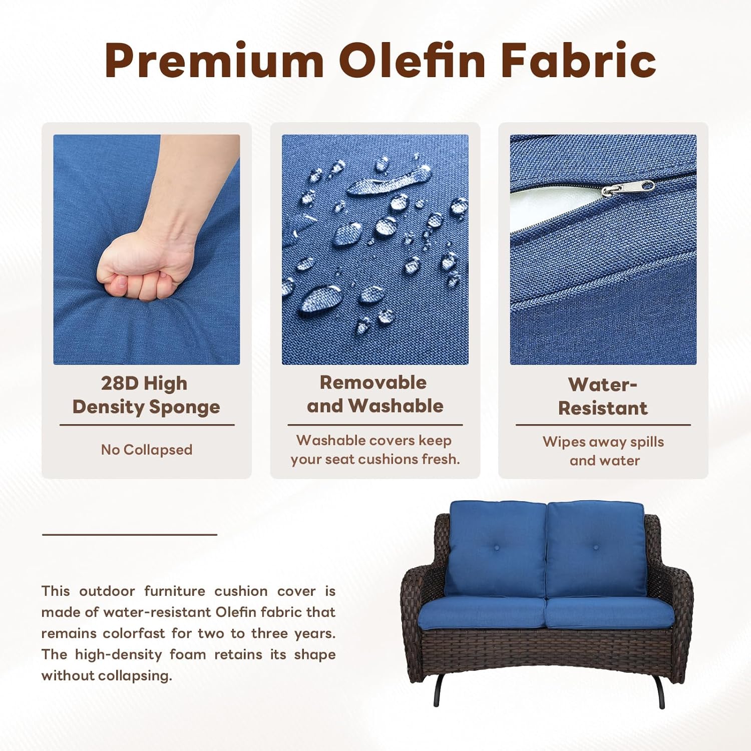 - Easy Assembly and Low Maintenance:This outdoor glider loveseat comes with clear instructions and all necessary tools for quick assembly. The removable seat cushions make cleaning a breeze, ensuring your outdoor patio loveseat stays fresh and inviting.