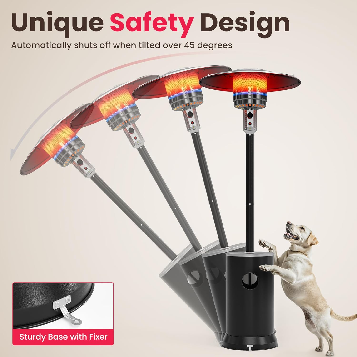 - Flat Top Heater,crafted from stainless steel,offers variable heat settings.Its built in control valve enables you to effortlessly adjust and regulate the temperature according to your preference. Equipped with a tip - over protection system, a safety valve will automatically shut off the heater in case it gets tilted.