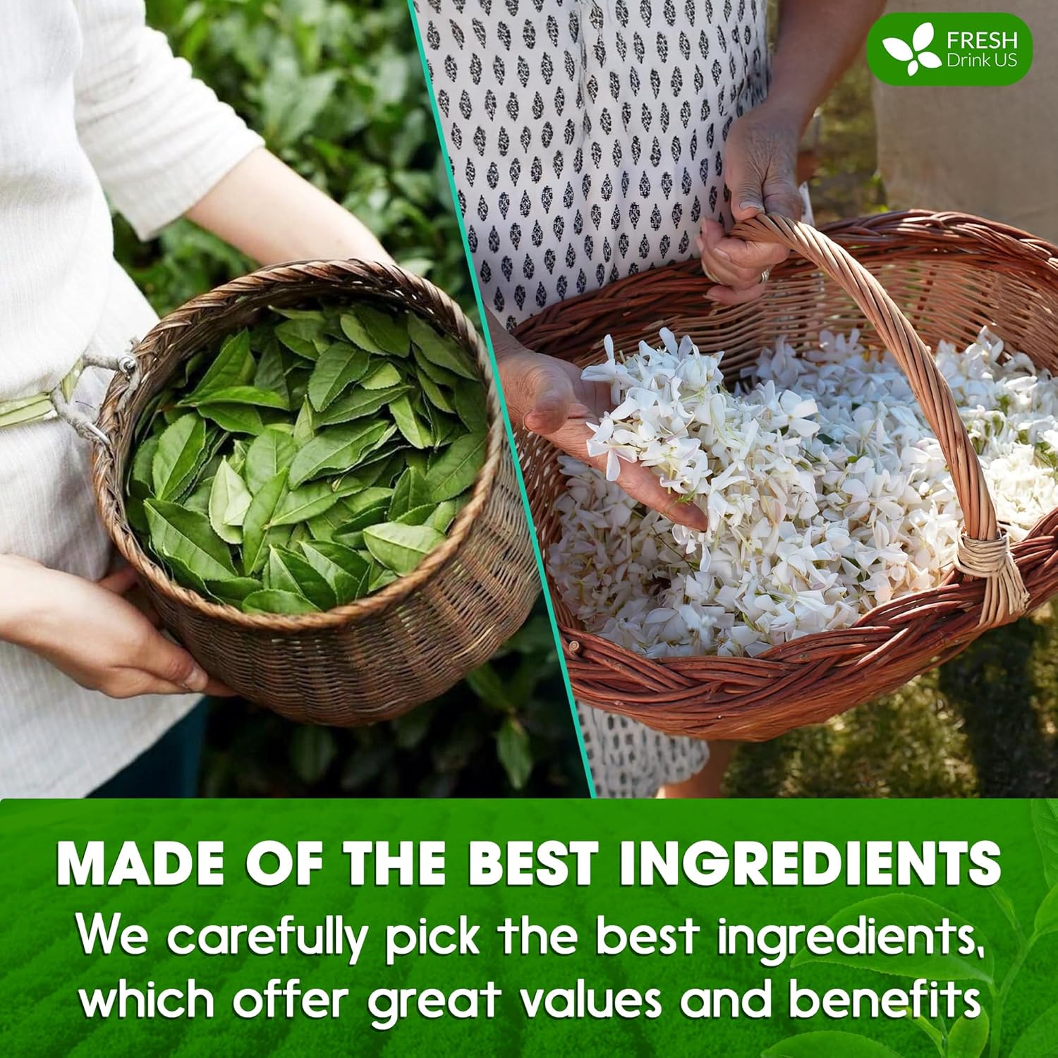 FreshDrinkUS, Premium 20 Tea Bags of Jasmine Green Tea, 100% Natural. Exquisite Flavor, Handpicked Leaves, Perfect for Tea Lovers. No Sugar, No Gluten, Vegan.