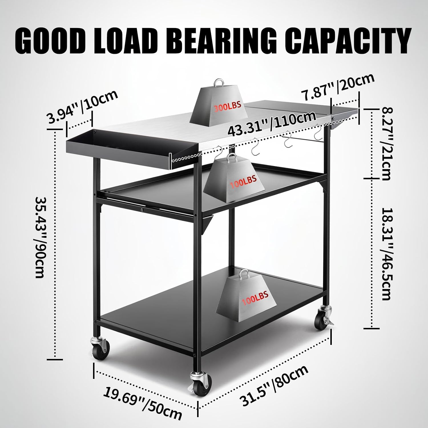 - Multifunctional Outdoor Table: The grill cart can be used indoors and outdoors.Working table cart on wheels can be used as a outdoor pizza oven table,food prep table,food serving table,kitchen cart,patio table,bar cart,BBQ grilling table,backyard cart,plants potting table,dining cart table,or workbench,tool cart etc.