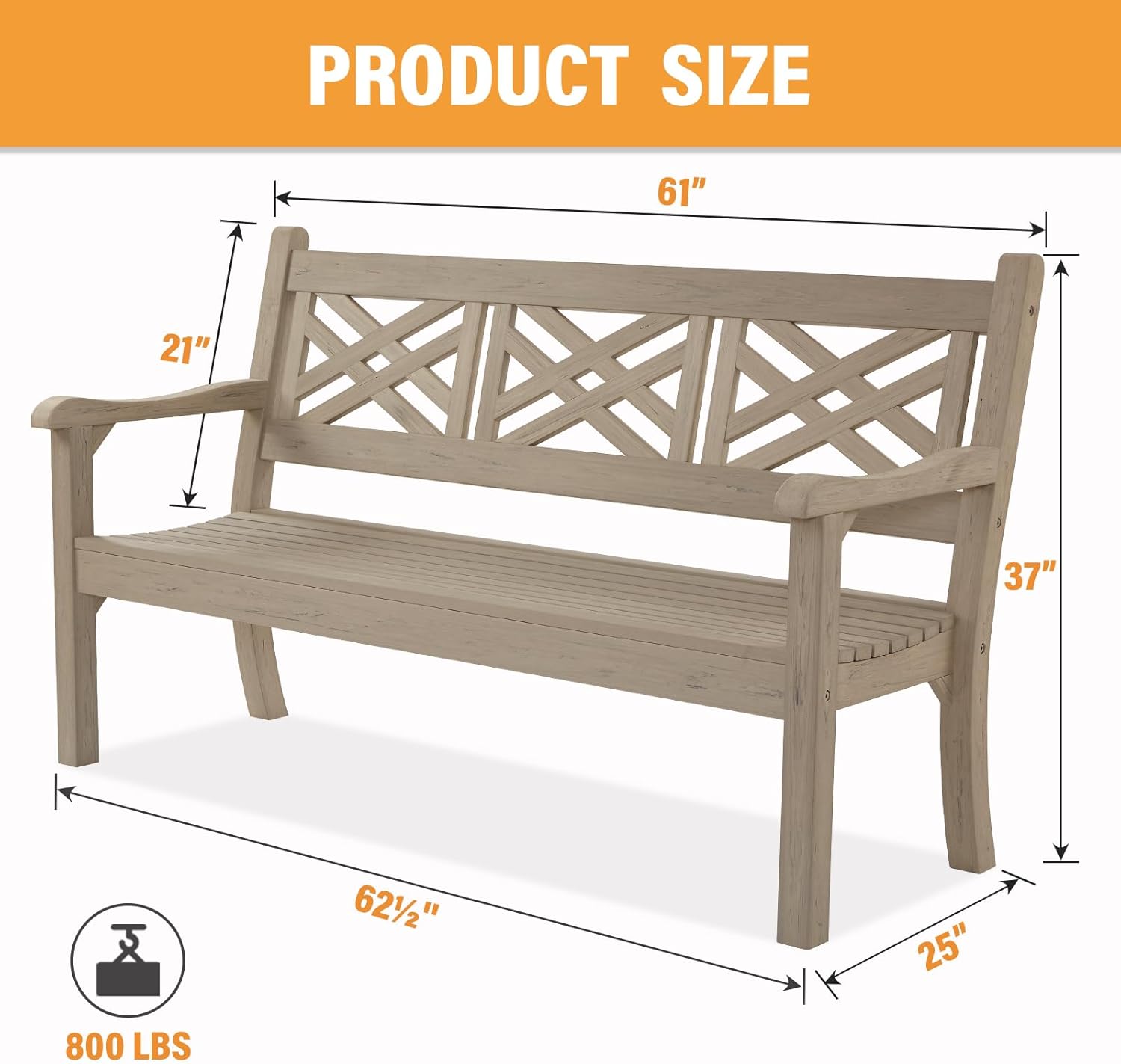 - All-Weather Poly Lumber Materials Crafted from premium poly lumber and reinforced with stainless steel hardware, this garden bench combines the timeless elegance of solid wood with the unmatched durability of poly lumber. Designed to withstand harsh outdoor conditions, it resists fading, cracking, and rot, ensuring long-lasting beauty and performance year after year.