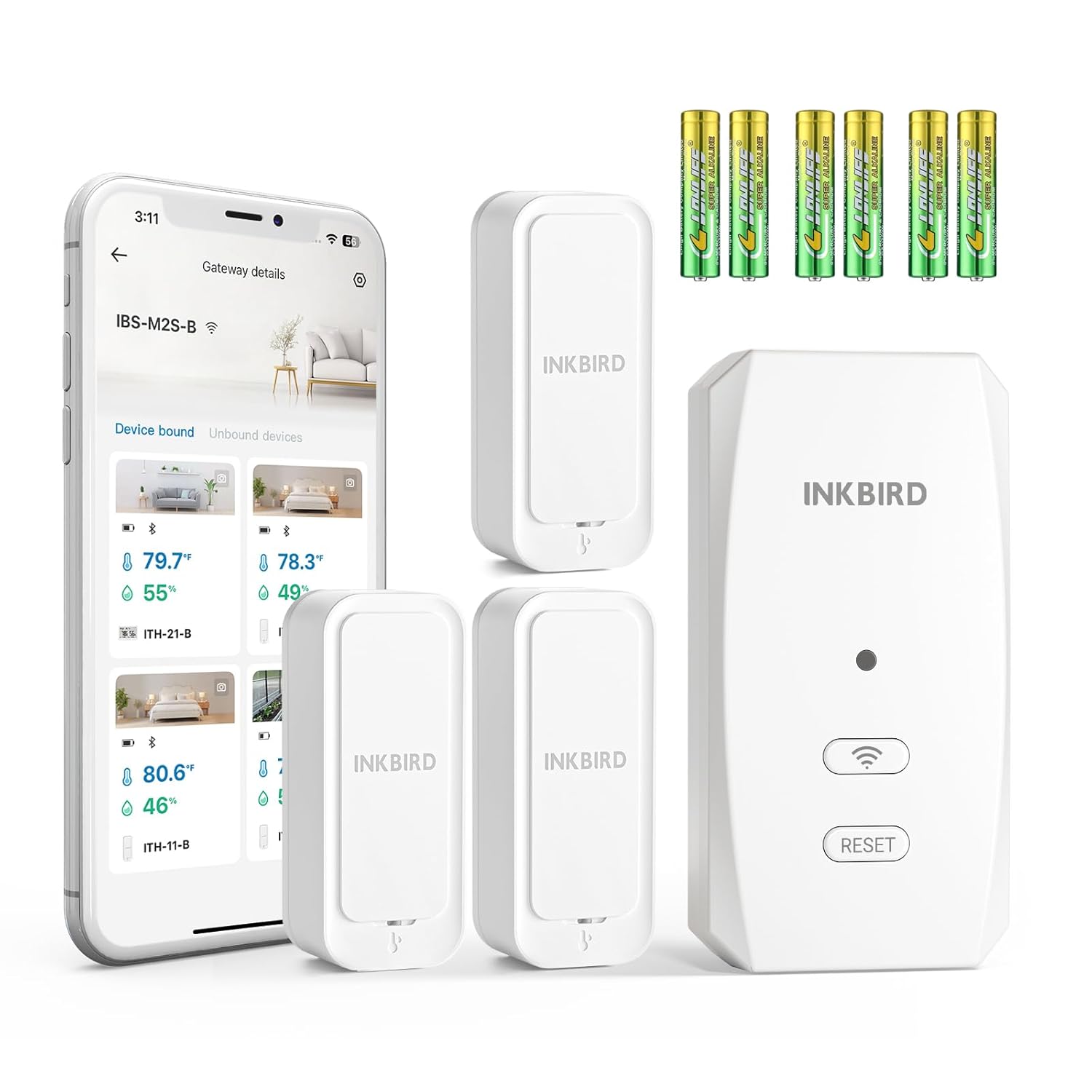 - Lifetime Warranty & Waterproof Design: What you get: 3*Hygrometer Thermometer, 1*M2S Gateway, 1*welcome guide, Lifetime warranty. INKBIRD's trusted support backs this dustproof/water-jet resistant sensor.