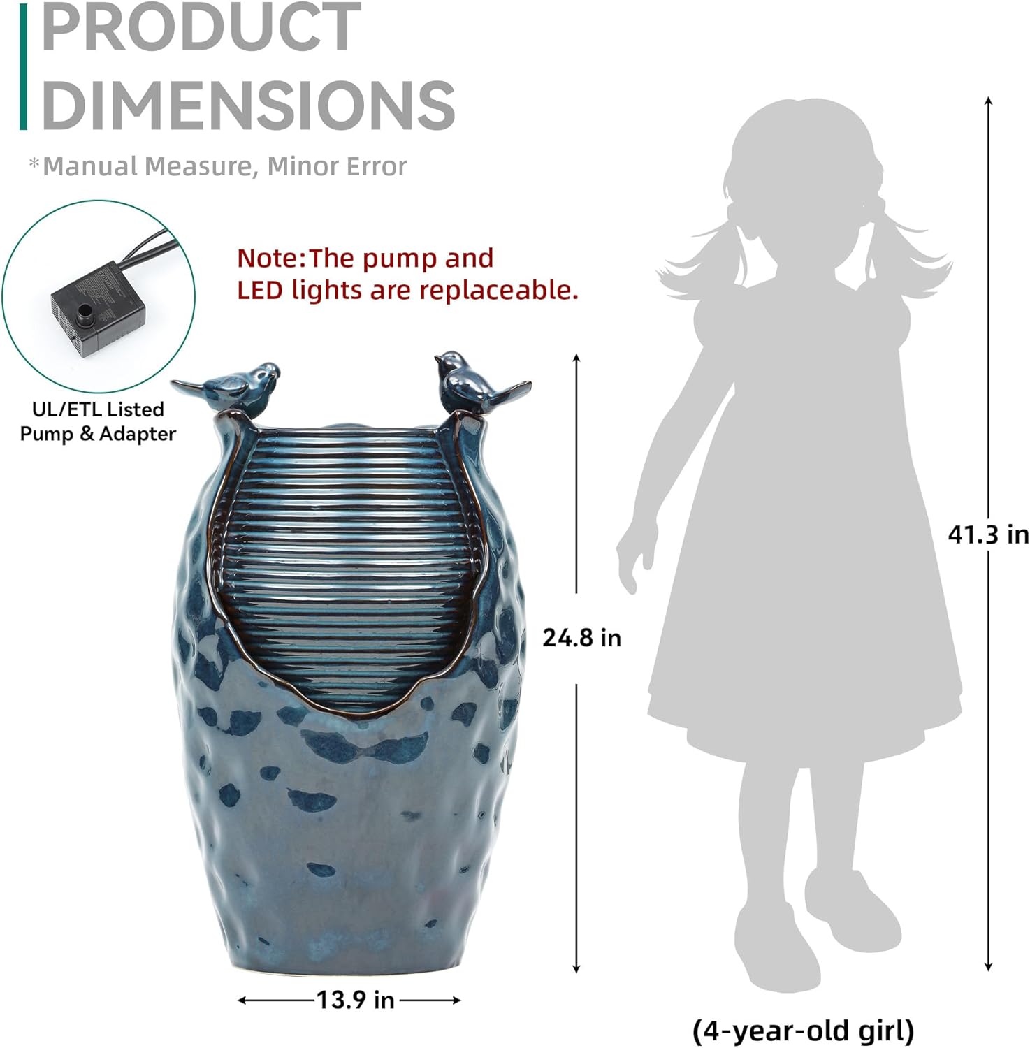 - EASY & SAFE USE: Equipped with an upgraded ETL/UL-Listed pump, 6ft standard power cord, easy to blend with any outdoor setting, just add water, plug-in and enjoy!