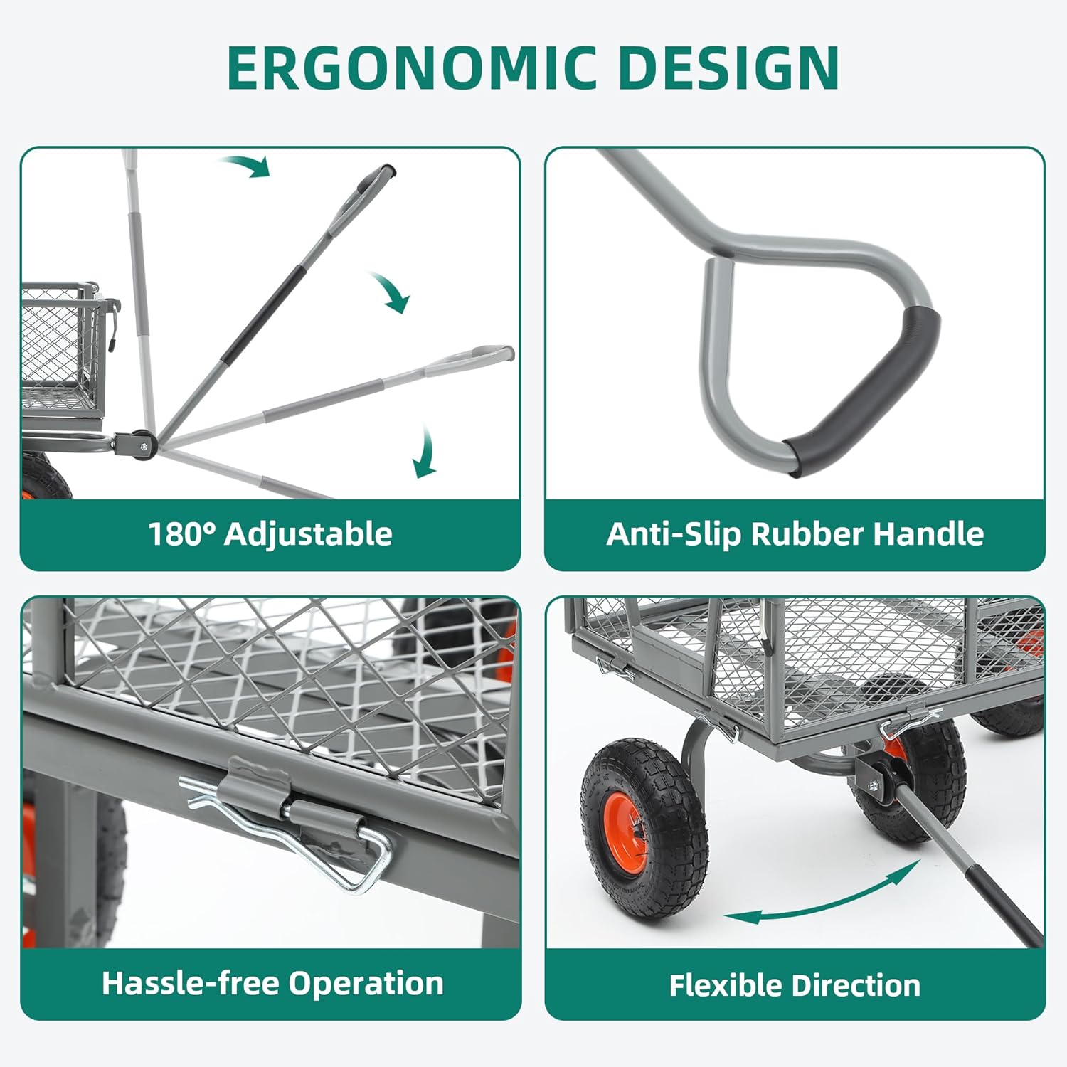 Heavy Duty 900 lbs Capacity Mesh Steel Garden Cart - 10" Pneumatic Tires, 180° Rotating Handle, Removable Sides, 4 CU'FT Utility Wagon for Yard & Garden