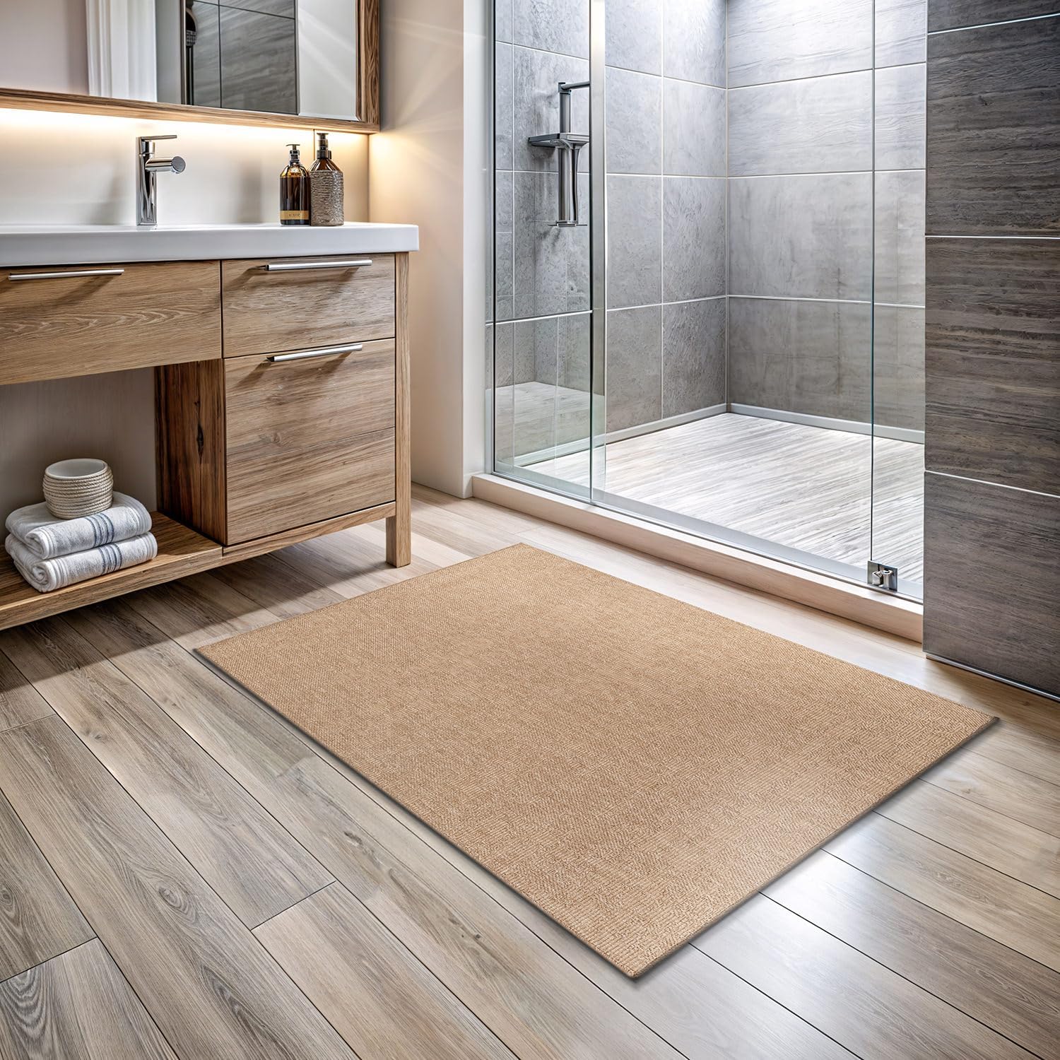 - [EASY TO CLEAN] This washable %100 premium polypropylene easy jute rug is designed for convenience vacuum, spot clean, or hose clean with mild detergent to keep your natural rug looking fresh in high-traffic areas.