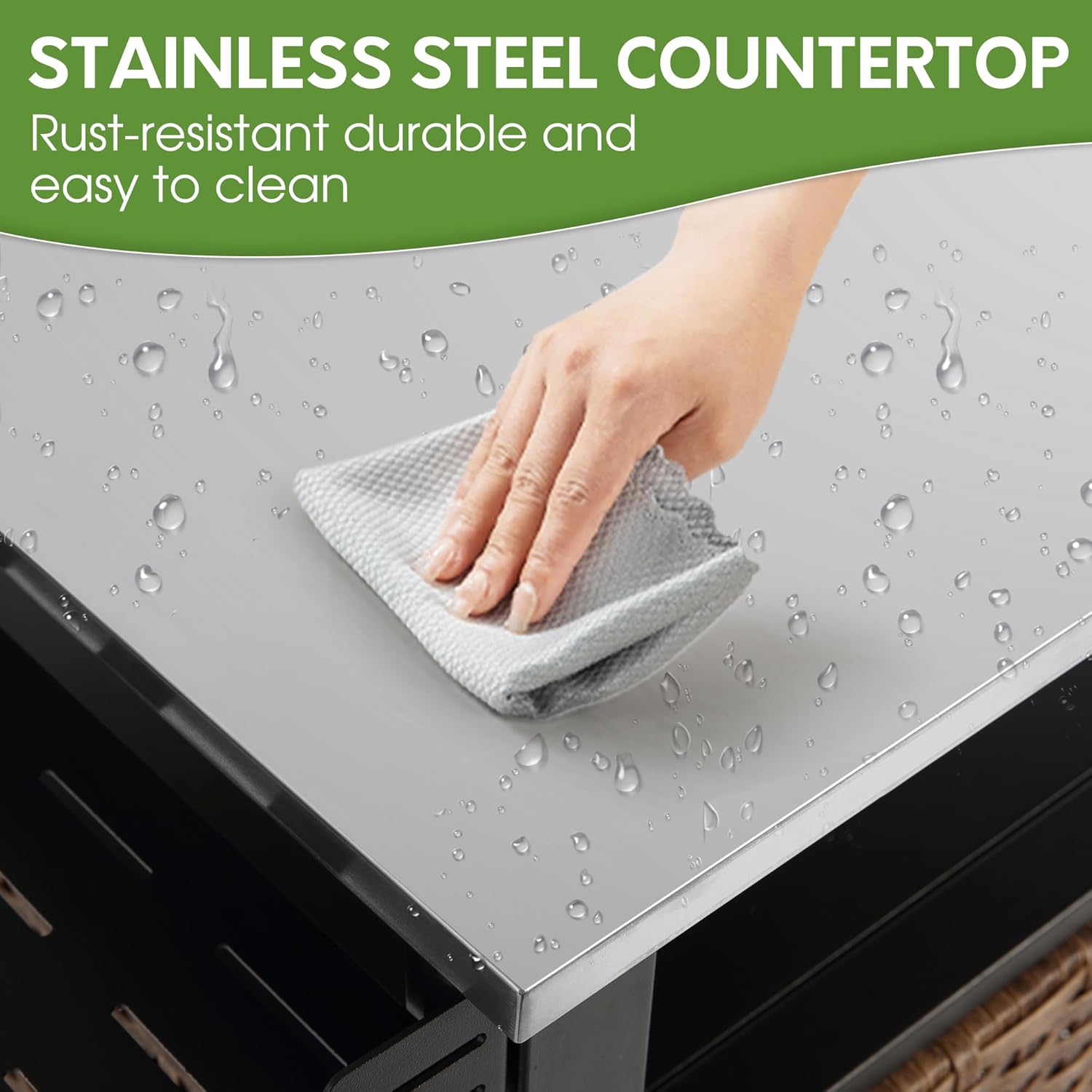 - Stainless Steel Table Top: This outdoor grill cart top is made of high-quality stainless steel and can be cleaned with a simple wipe, making it ideal for use as a buffet table during parties