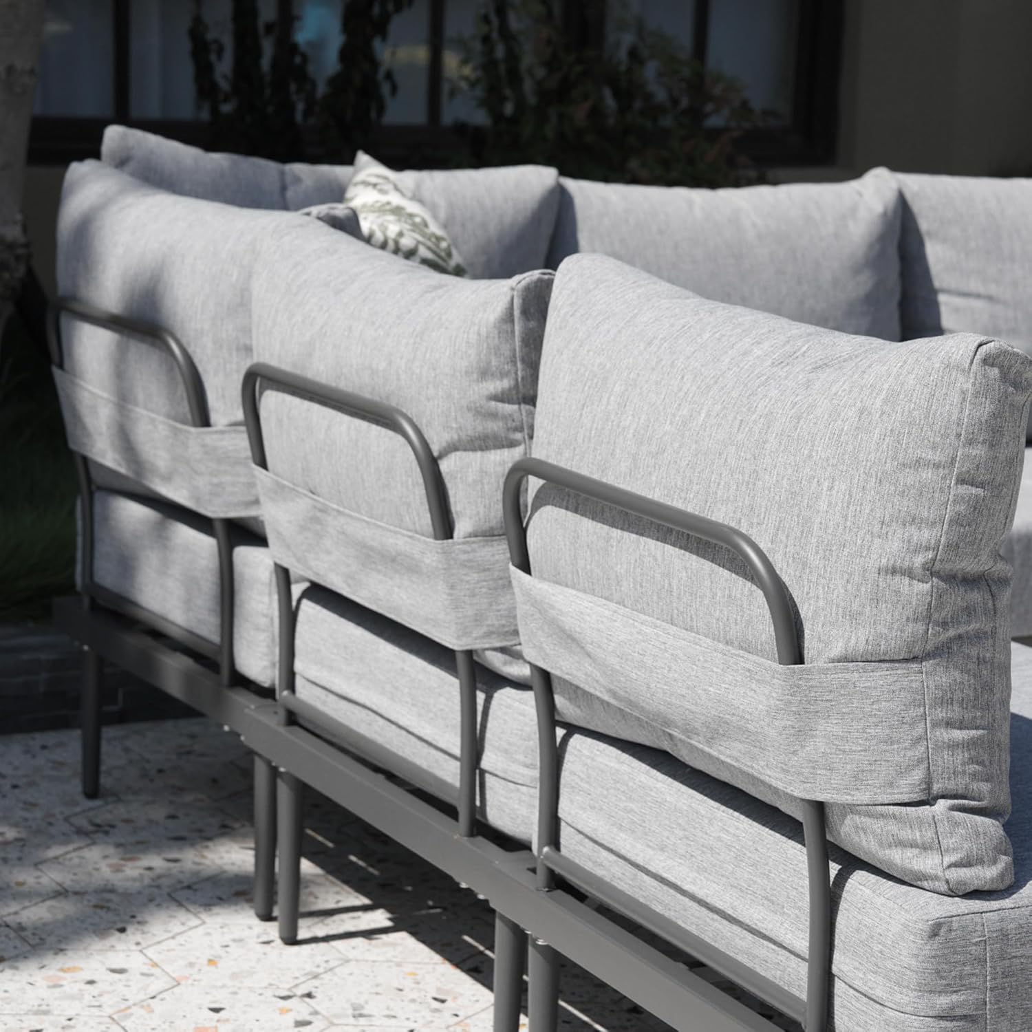 - Sturdy Metal Frame: The outdoor sofa set’s robust spray-painted metal structure promises exceptional stability and durability, so you can trust it will stand strong even through the seasons. Rust-resistant and built to last, this sectional will be your outdoor companion for years to come