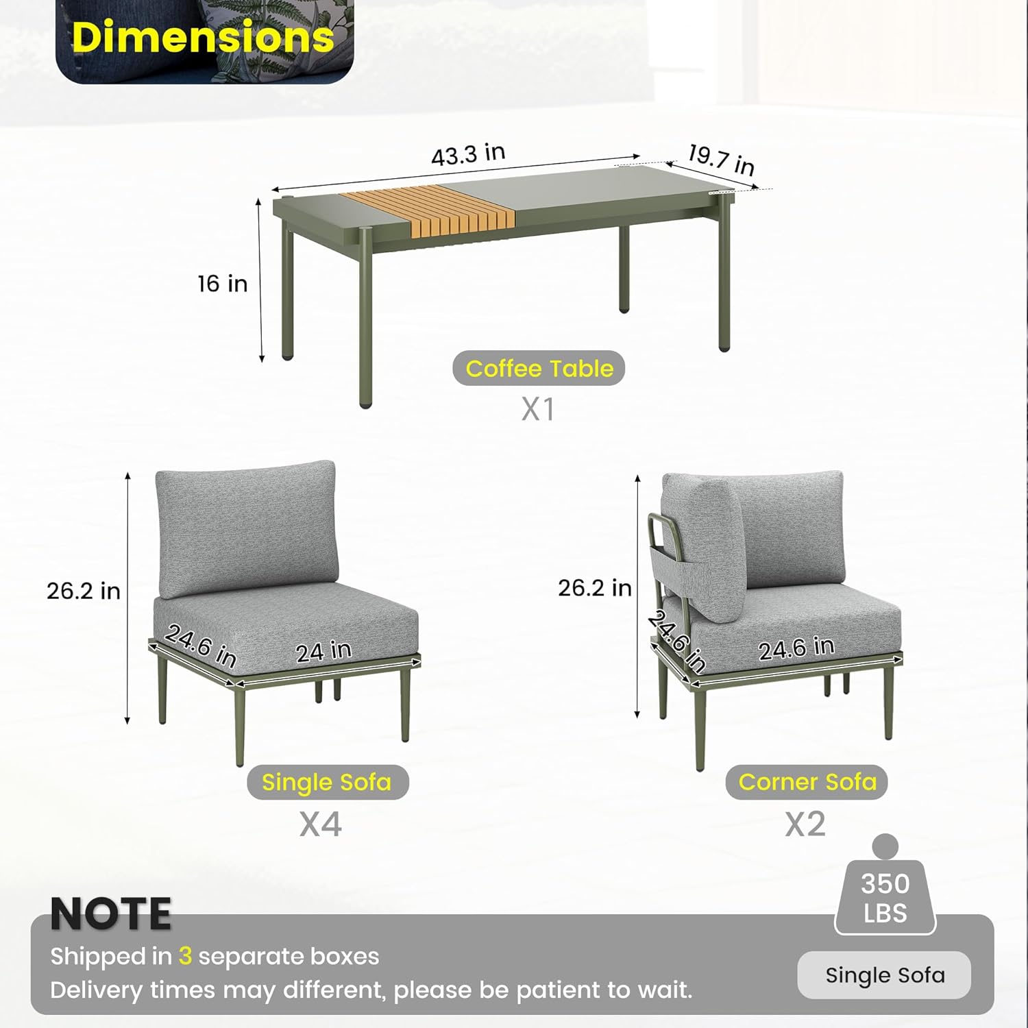 - Versatile Modular Design: Mix and match components to craft your ideal setup for gardens, backyards, decks, balconies, or terraces. From cozy nooks to large gatherings, this sectional adapts seamlessly, offering endless customization options for any outdoor occasion