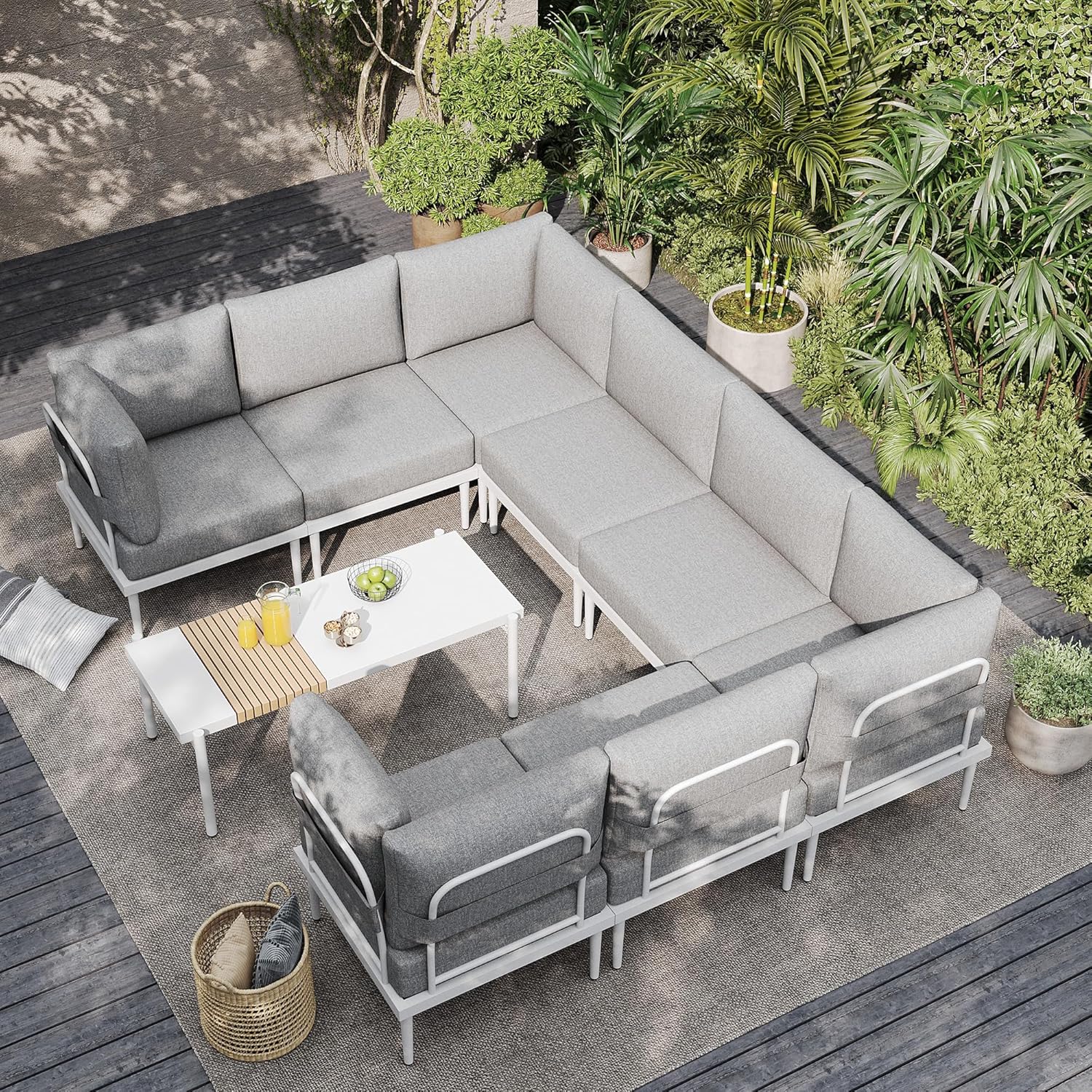 - Versatile Modular Design: Mix and match components to craft your ideal setup for gardens, backyards, decks, balconies, or terraces. From cozy nooks to large gatherings, this sectional adapts seamlessly, offering endless customization options for any outdoor occasion