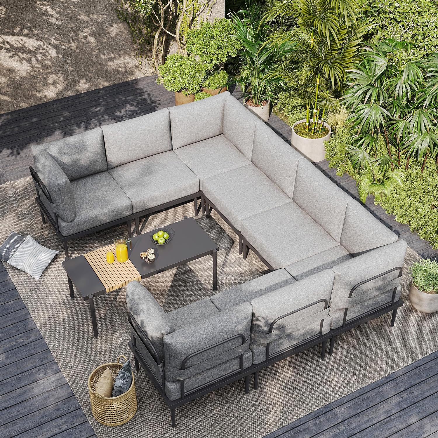 Sundale Outdoor 9 Pieces Metal Patio Furniture Set, Outdoor Sectional Sofa w/6 Inch Olefin Cushion and Coffee Table, Modern Outdoor Conversation Sets