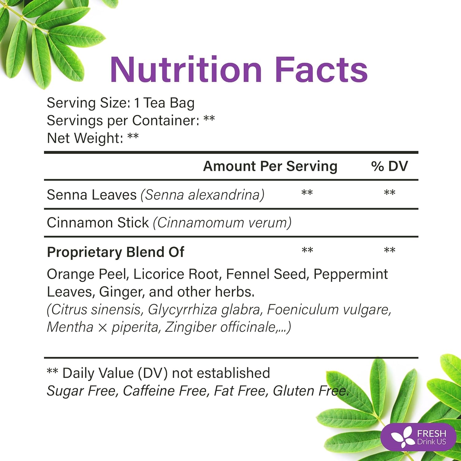 FreshDrinkUS, Fresh Move Tea β 75 Tea Bags - Herbal Tea Blend with Senna Leaves, Cinnamon, Orange Peel, Ginger & More β Caffeine-Free, Natural Ingredients β Smooth Flavor for Everyday Enjoyment