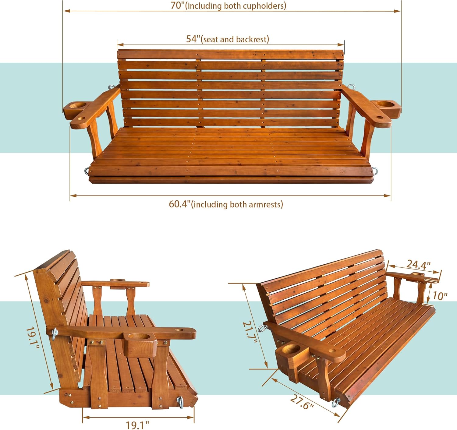 - ššššš”šš« ššš¬š¢š¬ššš§š: Features a durable PU wood paint finish performs best in covered outdoor areas, ensuring long-lasting beauty for many years; all sides are finished for complete protection; the coated screws and chains will not rust; if used in an open yard exposed to direct sunlight and high temperatures, we recommend applying an additional protective coating annually to prevent damage from weather and UV rays