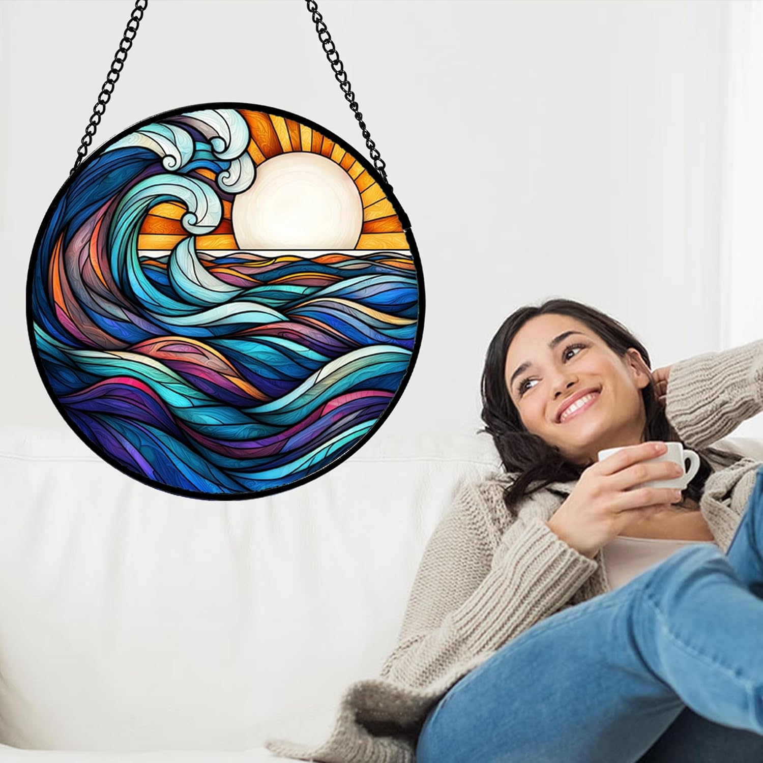 - Versatile and Easy to Hang: This stained glass window panel is a breeze to install with its included metal chain. Beautiful patterns are the perfect addition to your windows, doors, and home.