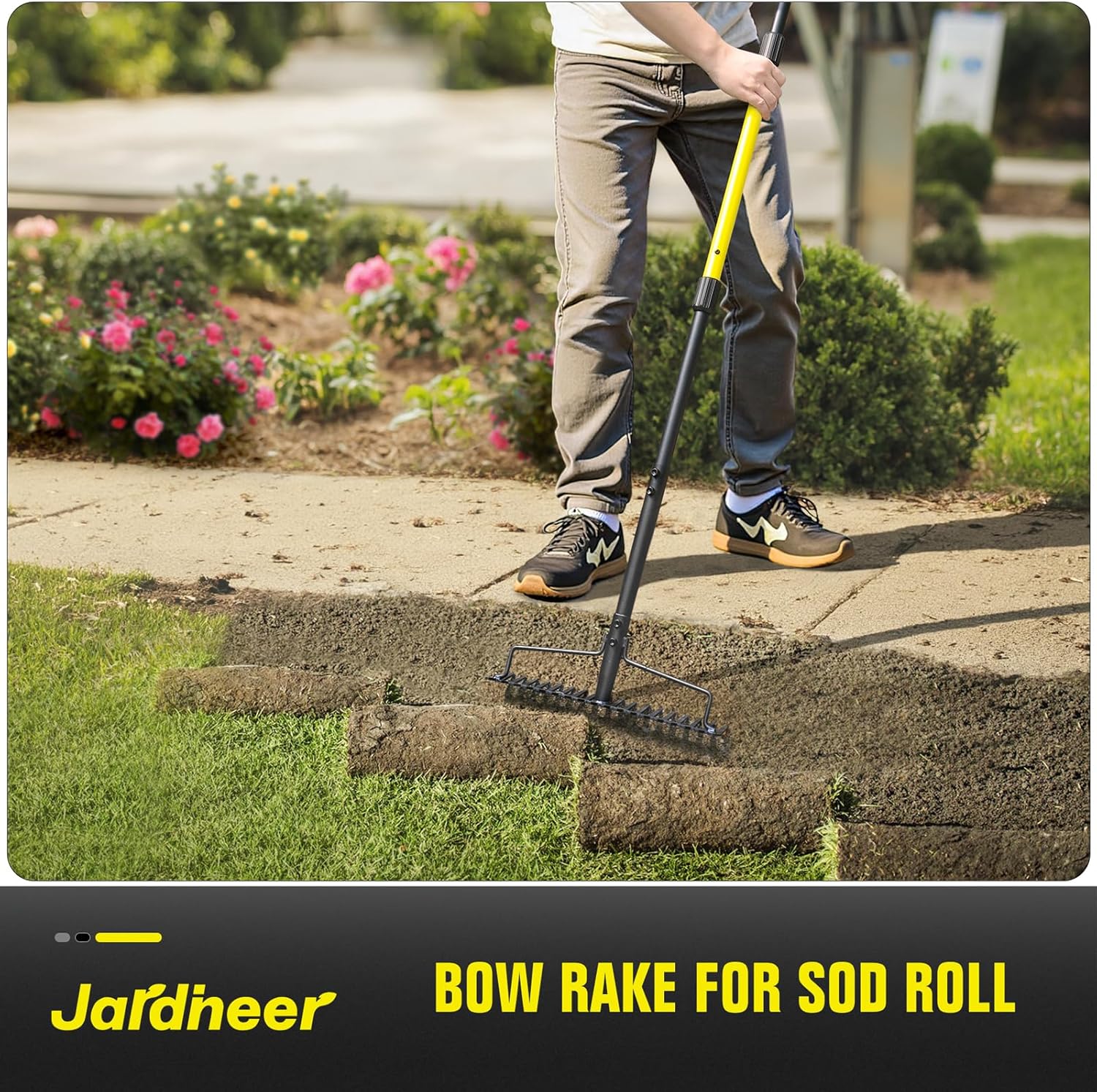 Jardineer Bow Rake Heavy Duty, Long Handle Metal Rakes for Gravel, Rocks, Lawns Leaves, Soil Leveling, Landscaping, Garden Rake with 18 Steel Tines (59 Inches)
